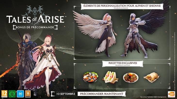 Contenu bonus : Pack de voyage premium (Artefacts, objets) Pack de l'aventurier Pack d'objets premium (Artefacts, objets, nourriture et Gald) Pack de tenues premium (8 tenues et 6 accessoires) Pack de tenues collaboration : 3 tenues Packs Vie scolaire : 6 tenues Packs A la plage : 6 tenues Packs des Royaumes combattants : 6 tenues Bande-son digitale de 14 pistes Plus-Produit : - le jeu - la figurine exclusive de 18 cm représentant Alphen et Shionne - l'Artbook de 64 pages - le Steelbook - la bande-son physique et digitale de 14 pistes Pendant 300 ans, Rena a imposé son joug sur Dahna, pillant les ressources de la planète et dépouillant le peuple de sa dignité et de sa liberté. Notre histoire commence avec Alphen et Shionne, deux personnes nées dans des mondes différents, qui cherchent à changer leur destin et tendre vers un nouveau futur.