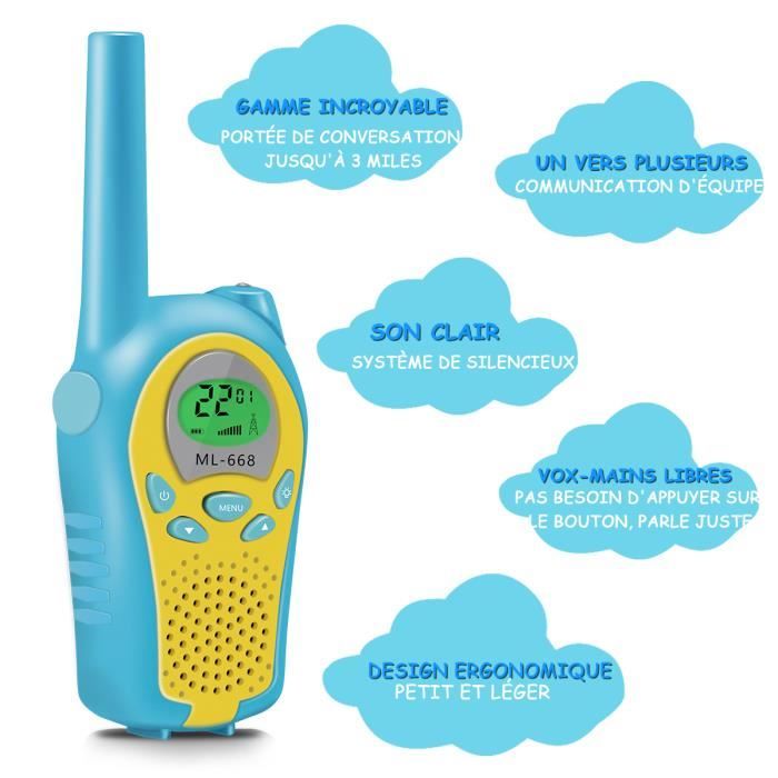 | Libellé | Talkie Walkie Enfant - 3KM Longue Distance - 8 Canaux - Écran LCD - Lampe Torche - Cadeau de Noël Jouets Enfants |