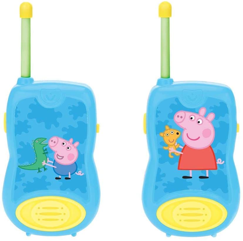 Cette paire de talkies-walkies permet de jouer et de communiquer avec tes amis pendant des heures! Avec une portée de transmission de 120 mètres en extérieur (peut varier en fonction du relief et des conditions climatiques), restez en contact pendant vos explorations!Retrouve Peppa Piget tous ses amis sur ces talkies-walkies dédiés aux fans de Peppa Pig!Son design ergonomique est conçu pour être facilement maniable par les petites mains, dès 3 ans. De plus, les talkies walkies disposent d’une antenne flexible et d’un clip ceinture : idéal pour l’emmener partout pour vivre de nouvelles aventures!Ce pack contient:-2 talkies-walkies avec clip ceinture-1 manuel d’instruction