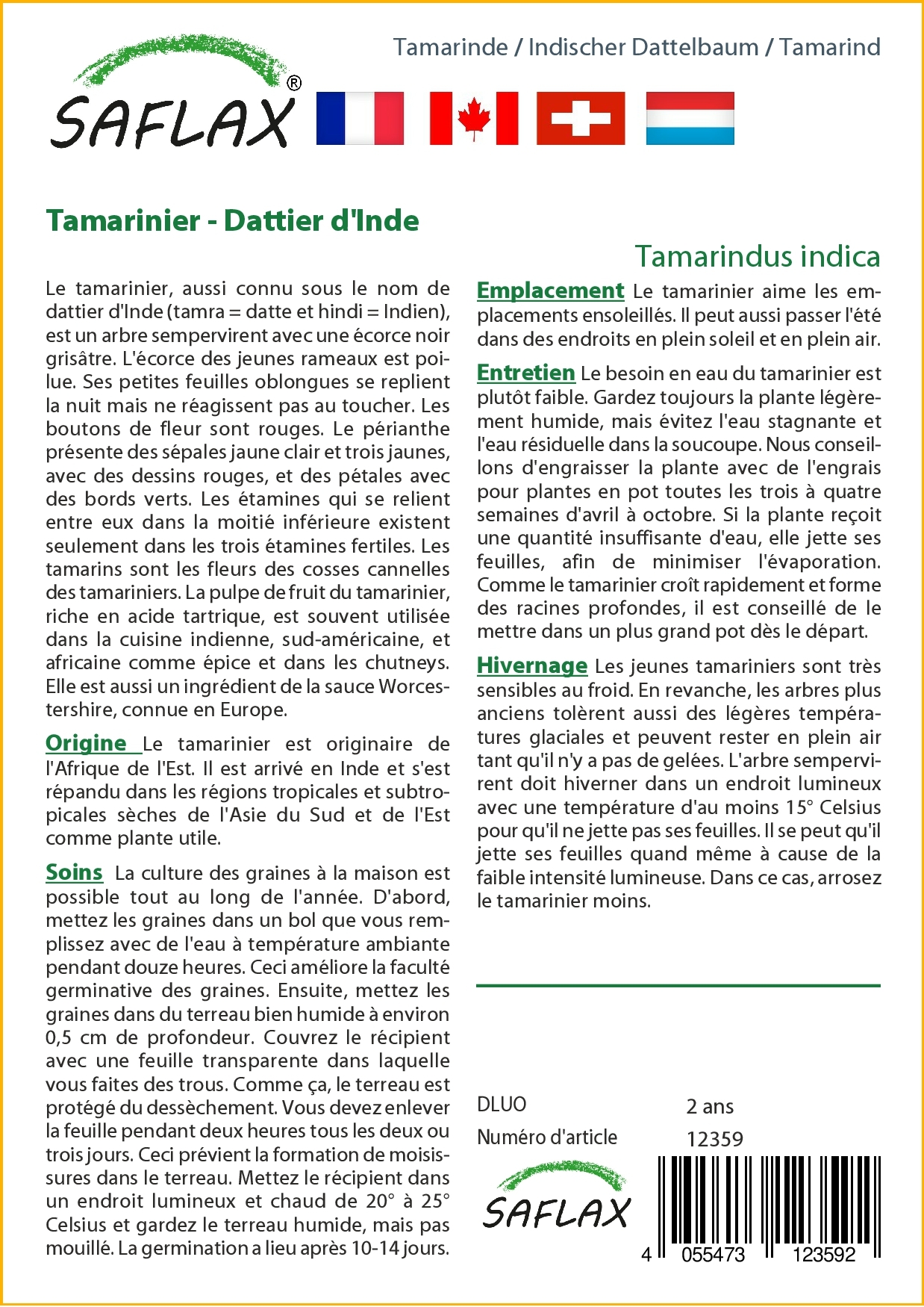 | Libellé | Tamarinier - Dattier d'Inde - 4 graines - Tamarindus indica |