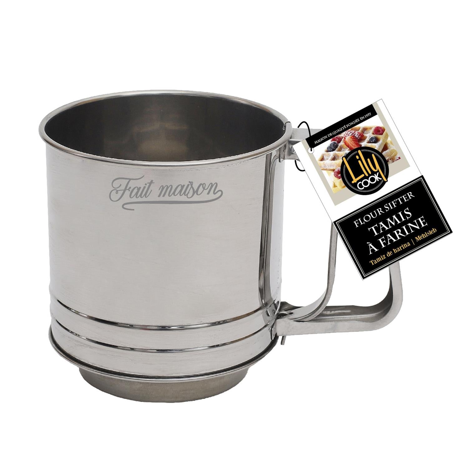 - Ce tamis vous permettra de soupoudrer vos gâteaux ou de fariner votre plan de travail ! Pratique, sa poignée vous offre une prise en main optimale.