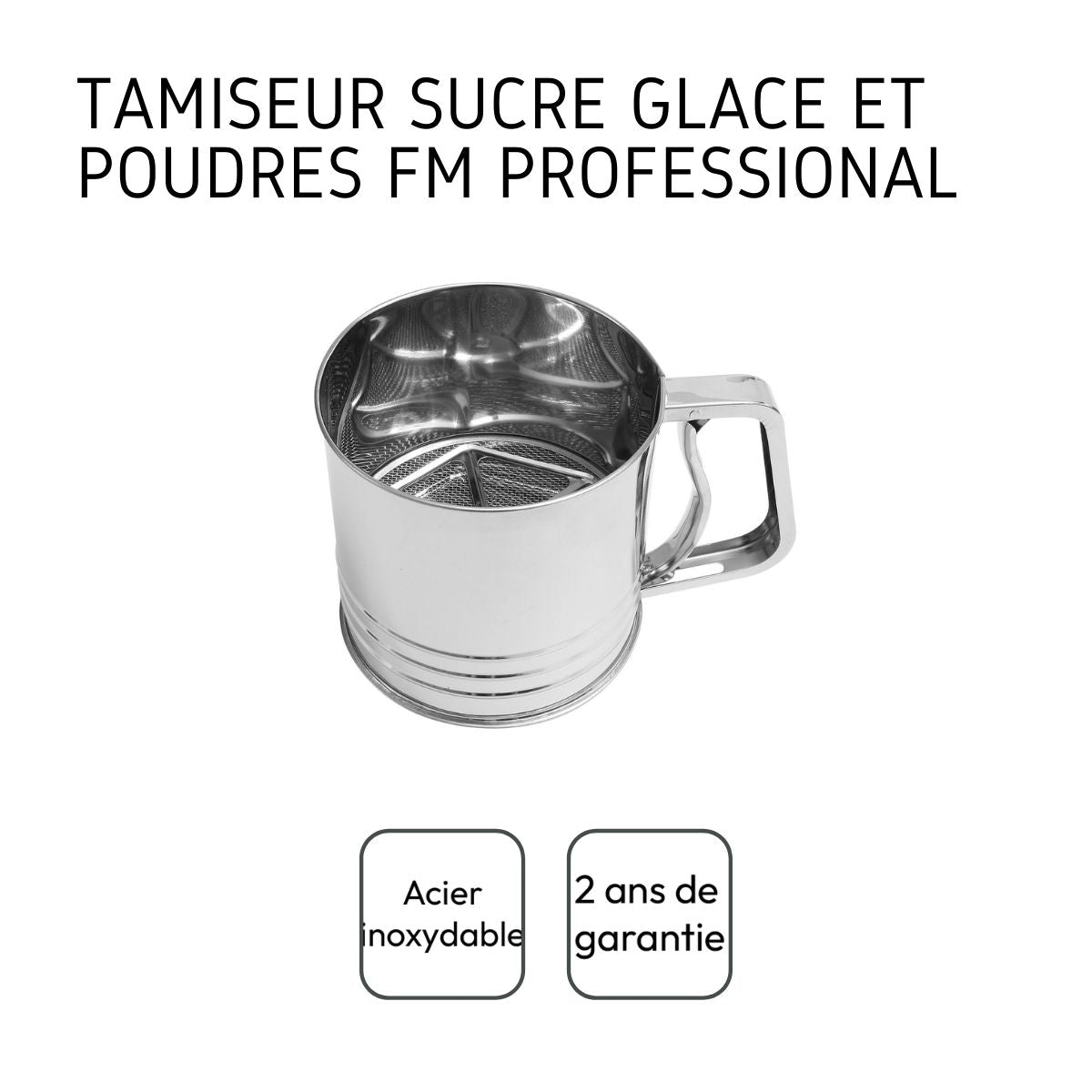 DESCRIPTION : Tamiser et saupoudrer grâce au tamis mécanique FM Professional. Pratique et utile, il vous permet d'éviter les grumeaux et de décorer avec précision vos recettes. LE PETIT + : Sa poignée ergonomique qui permet de garder une main libre tout en utilisant le tamis. DIMENSIONS : 12 x 13 cm COMPOSITION : Acier inoxydable CONTENU : 1 tamis mécanique Professional est parfait pour tamiser, saupoudrer et décorer les poudres dans vos préparations culinaires et sur vos desserts. En acier inoxydable et ergonomique, il est fait pour vous ! FM Professional est une marque du groupe Fackelmann, destinée aux professionnels de la cuisine et de la pâtisserie. FM Professional regroupe des ustensiles de cuisine et de pâtisserie par lots qui sont intéressants pour les professionnels du secteur. Les ustensiles de pâtisserie et de cuisine proposés par FM Professional sont fabriqués en acier inoxydable de haute qualité et sont très résistants. La marque souhaite apporter la qualité des ustensiles professionnels dans toutes les cuisines.