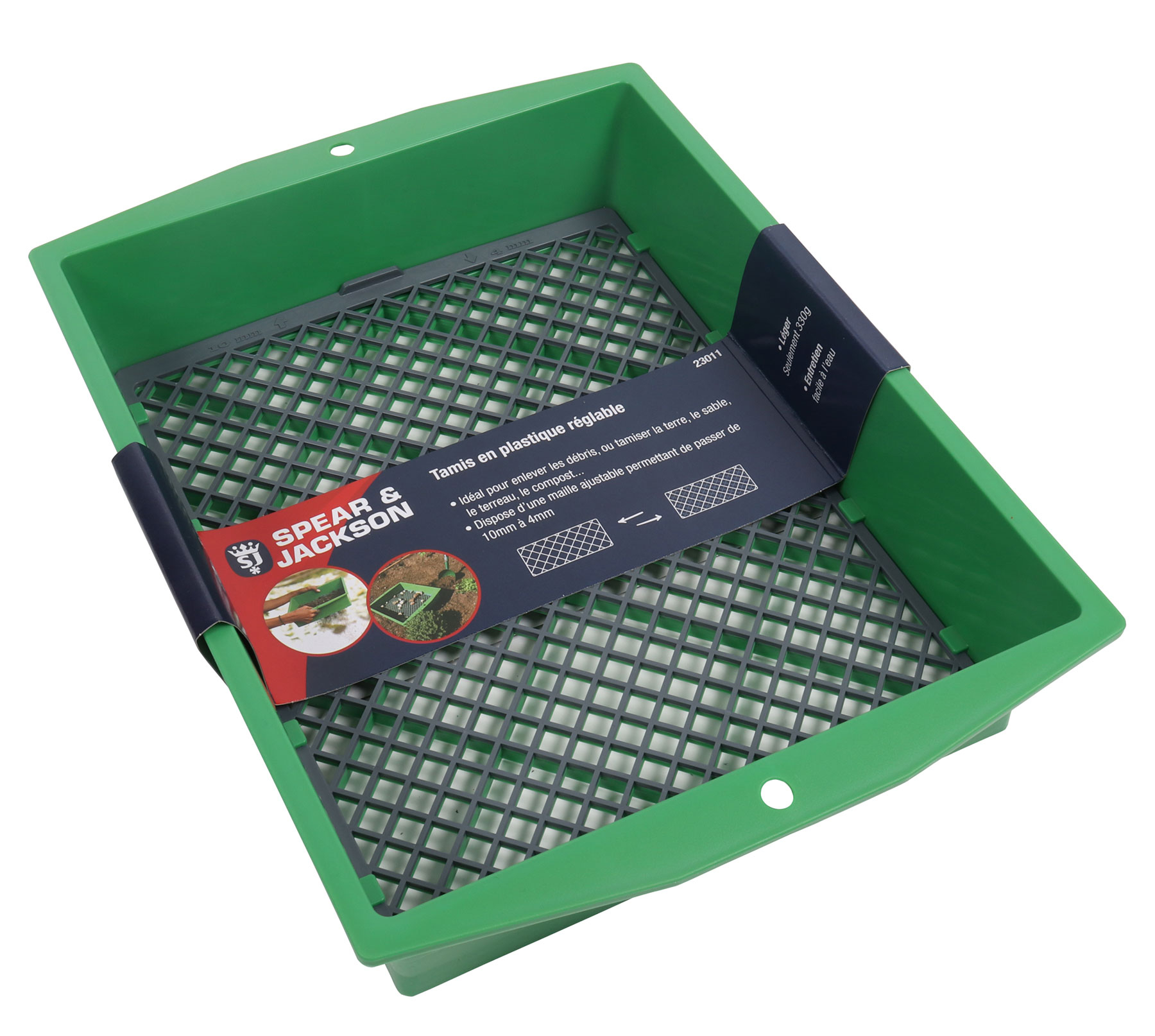 Ce tamis rectangulaire en plastique est idéal pour séparer les gros éléments du sol (pierres, écorces, feuilles, brindilles, mauvaises herbes etc.) de la terre, du terreau ou du compost. Il se nettoie facilement à l'eau sans crainte de voir le produit rouiller. Pratique : Maille ajustable selon les besoins passant de 4 à 10 mm Grande capacité de tamisage Léger : 330 grammes