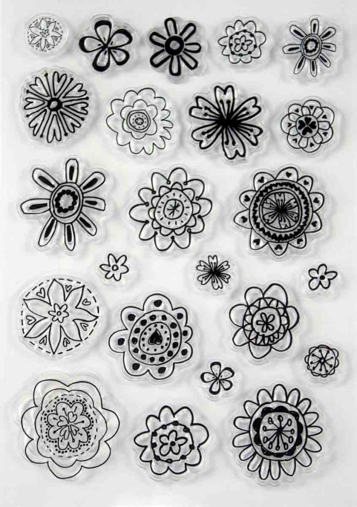 Tampon transparent 1 à 3 cm Fleurs 23 pièces