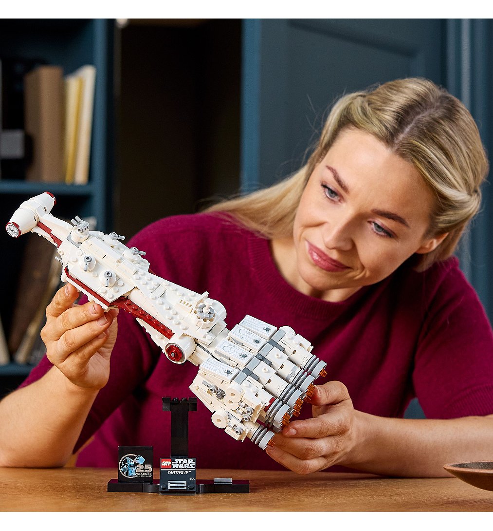 Revivez les émotions que vous avez ressenties en regardant la scène d’ouverture de Star Wars : Un nouvel espoir avec le Tantive IV à construire en briques LEGO®. Que la Force de la créativité soit avec vous pendant la construction des détails culte du vaisseau pourchassé par un croiseur interstellaire au début du film. Placez votre véhicule Star Wars™ sur le support à construire et ajoutez l’écriteau ainsi qu’une brique spéciale 25e anniversaire de LEGO Star Wars pour obtenir une décoration fascinante. Ce modèle à construire et exposer fait partie de la collection de vaisseaux LEGO Star Wars de taille moyenne. Faites-vous plaisir ou offrez ce set à d’autres fans de Star Wars ou à des collectionneurs. Le set LEGO Star Wars Tantive IV pour adultes propose une expérience de construction créative complexe. Vous pouvez télécharger l’appli LEGO Builder pour zoomer et faire pivoter vos modèles en 3D, suivre votre progression et sauvegarder vos sets au même endroit.
