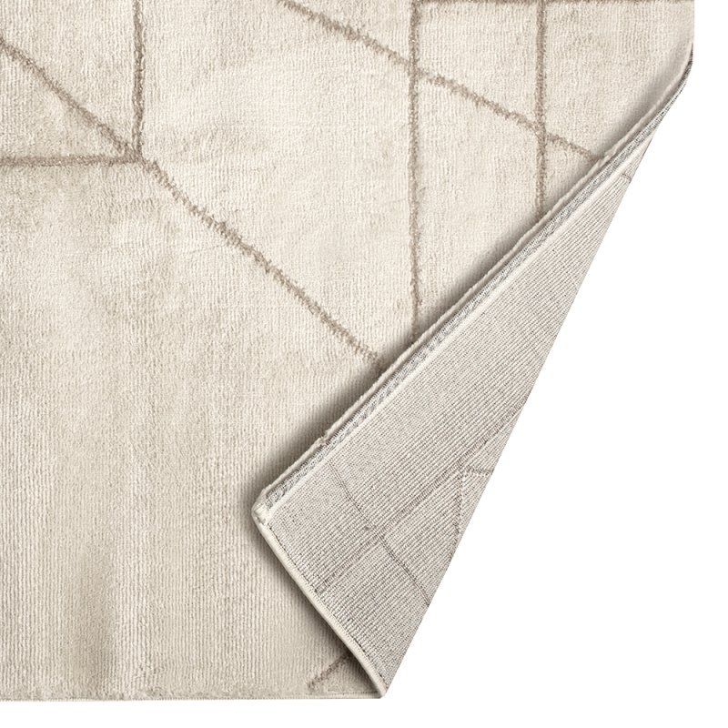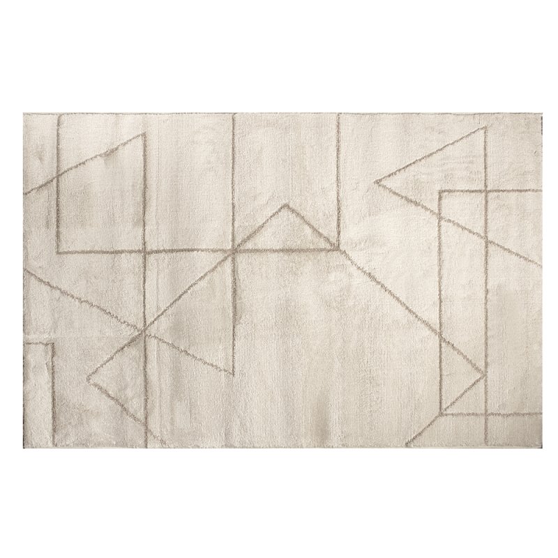 Tapis 100 x 150 cm tissage jacquard et fil lurex doré à motif géométrique doux au toucher avec une hauteur de fil de 11mm de couleur écru. Succombez au confort et à la douceur avec ce moelleux tapis qui apportera du charme à votre décoration. Votre pièce gagnera immédiatement en chic. Son fil lurex doré apporte du relief et du graphisme pour un habillage de vos sols plus contrasté et marquant.