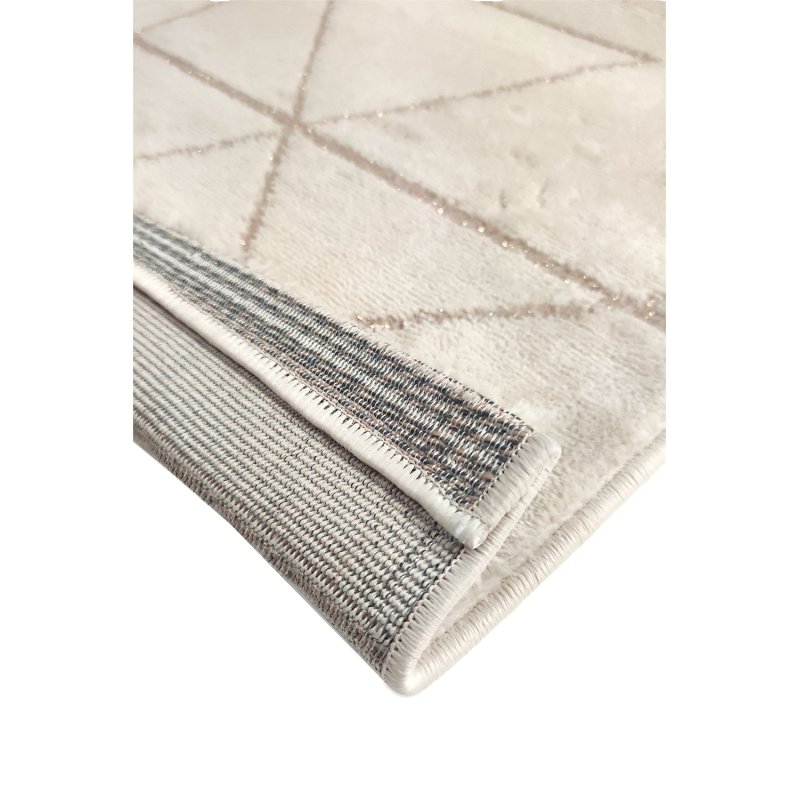 Tapis 100 x 150 cm Tissage Jacquard et Fil Lurex Doré Motif Géométrique Ecru
