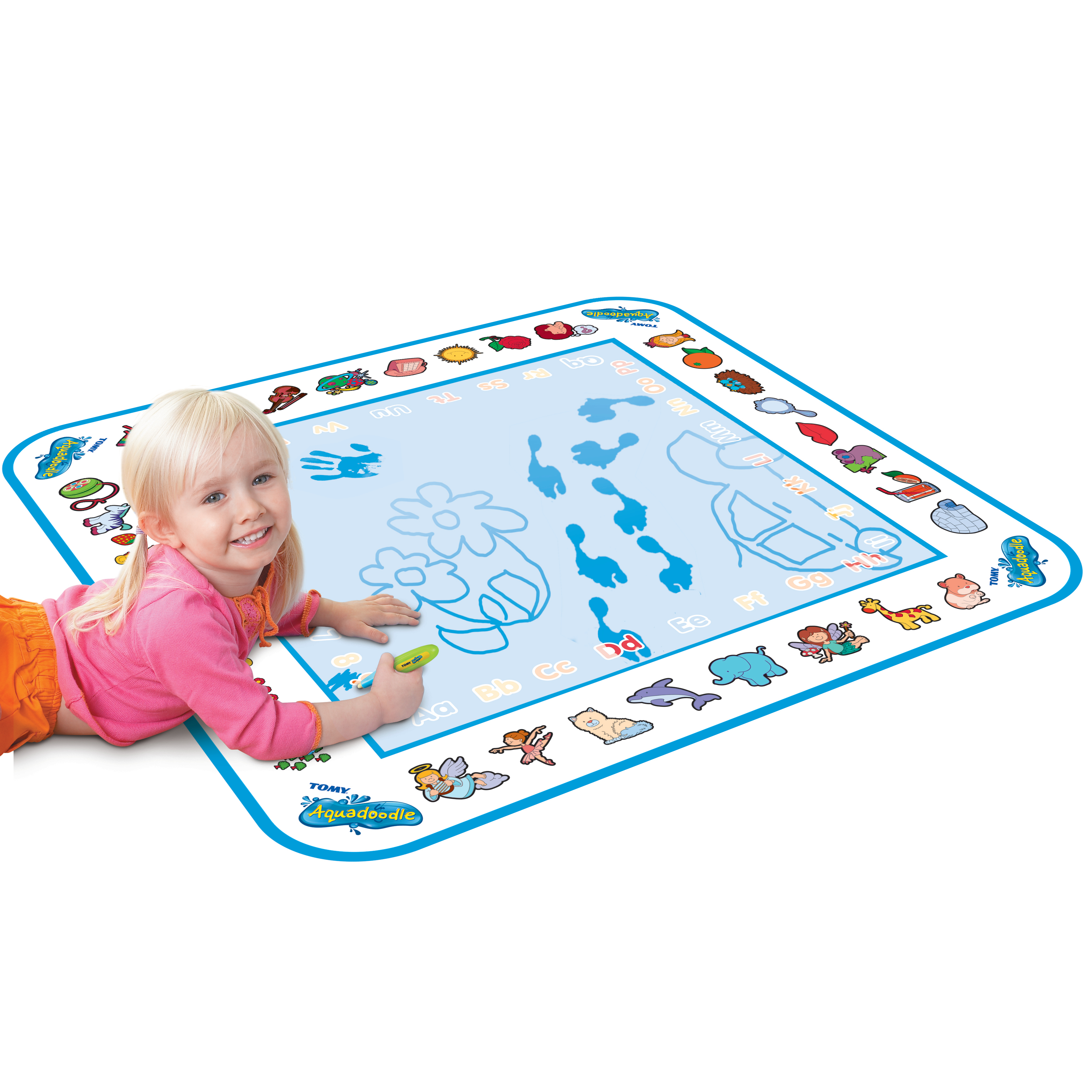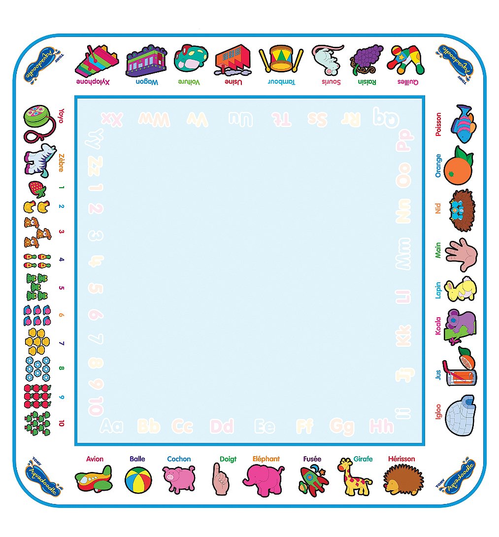 Un tapis ludique vraiment magique pour dessiner à l’eau tout en couleur et sans se tacher ! La surface de dessin est découpée en 4 couleurs, le stylo fonctionne à l’eau pour éviter tout risque de taches ! Educatif : L’enfant apprends à écrire les chiffres et les lettres tout en couleur. Il découvre aussi de nouveaux mots grâce aux images correspondant à chaque lettre et chiffre. Un plaisir infini : au bout de quelques minutes, l’eau s’évapore et le dessin disparaît. L’enfant peut recommencer à l’infini! Des heures de dessin en perspective et une super alternative aux feuilles de papier ! Dimensions du tapis 75 cm x 75 cm. Dès 18 mois.