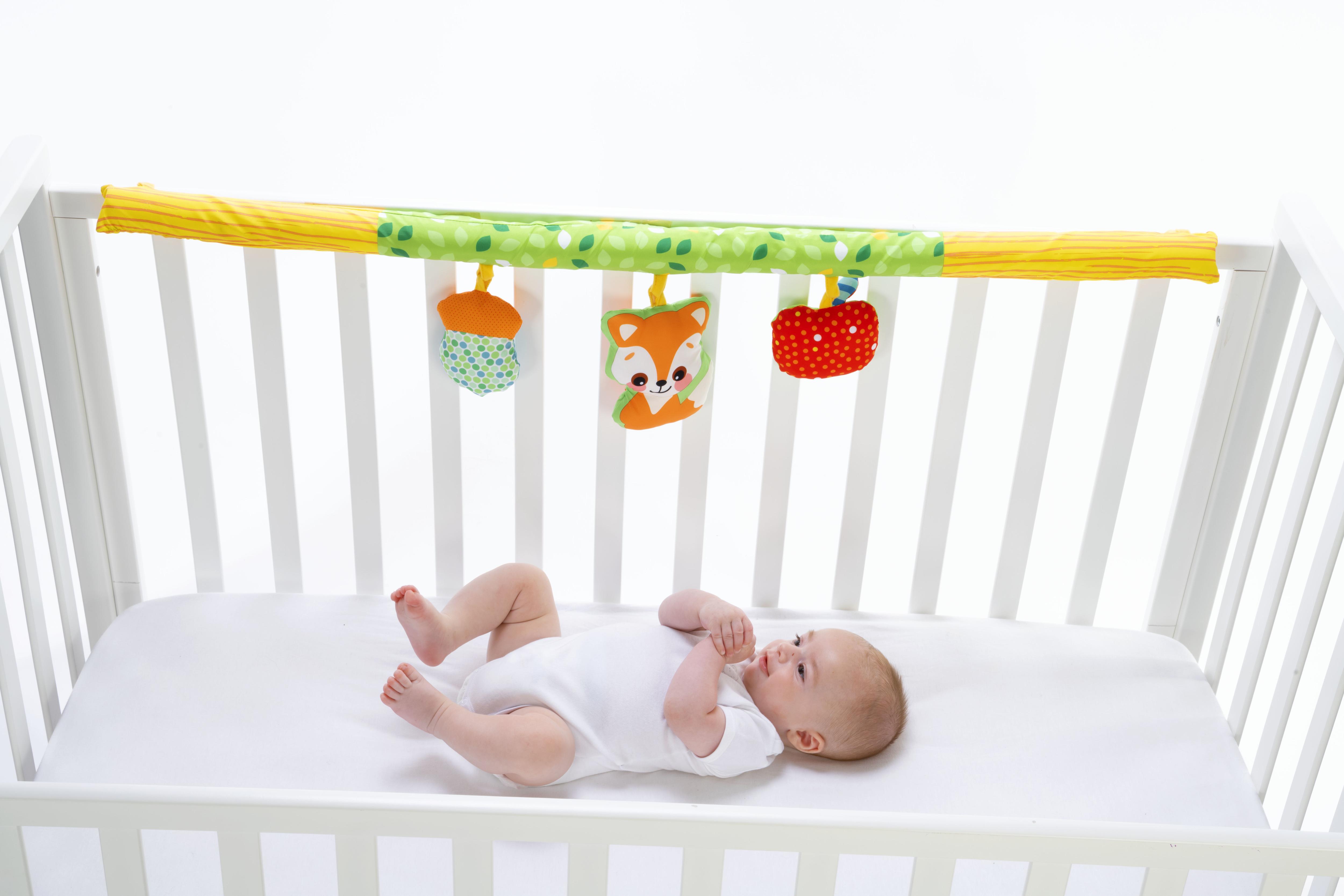 Tapis arche de la forêt 3 en 1 avec arche amovible pour utiliser uniquement le tapis. L'arche est composée de 3 jouets d'activités. L'arche peut également être utilisée en arche de lit et en contour de lit.