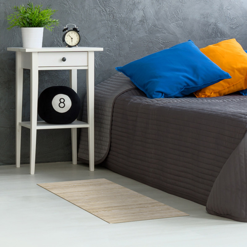 Tapis en bambou naturel (lattes de 16 mm) avec un effet de plancher et des finitions Premium. Idéal pour tous types de pièces : couloirs, salon, chambre... Résistant à l'humidité, vous pouvez également le placer dans la salle de bain. Tapis antidérapant, grâce à son support en caoutchouc EVA spongieux. Entretien facile : vous pouvez l'aspirer et le nettoyer avec de l'eau et du savon neutre. Finitions de qualité supérieure : vernis et sans bordures.