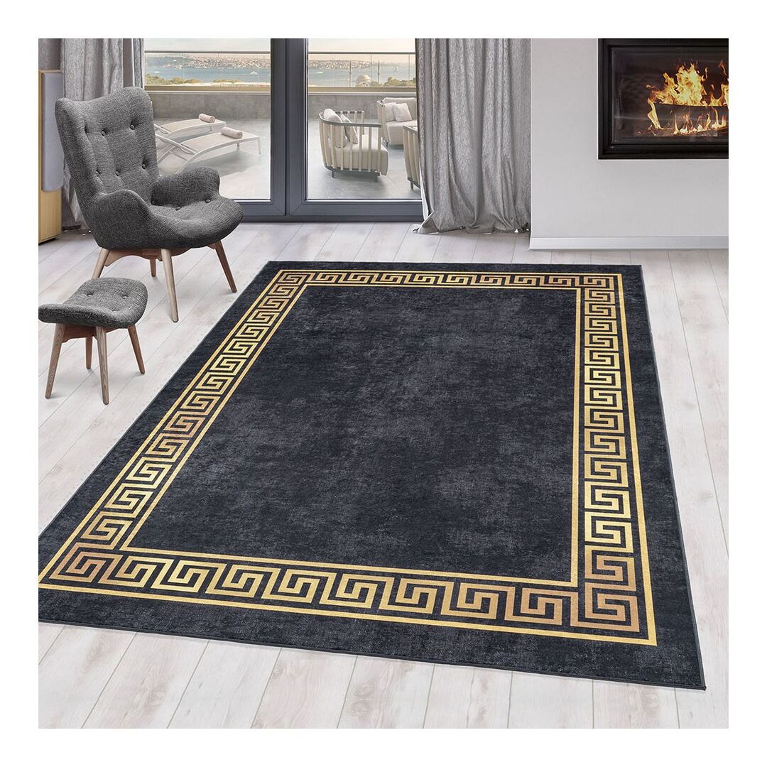 | Libellé | Tapis baroque noir lavable en machine Valencia |