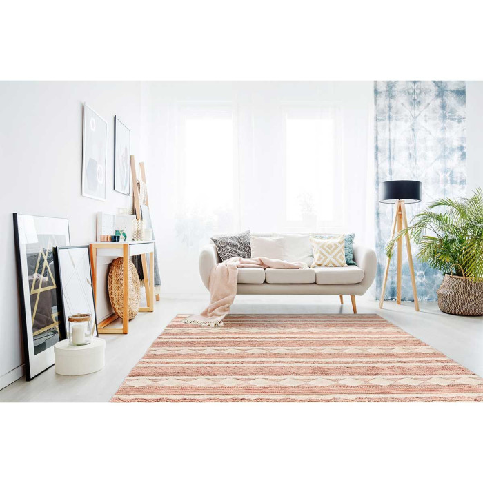 | Libellé | Tapis Bohème Fait à la Main "Bohist II" Rose & Crème 80 x 150 cm |
