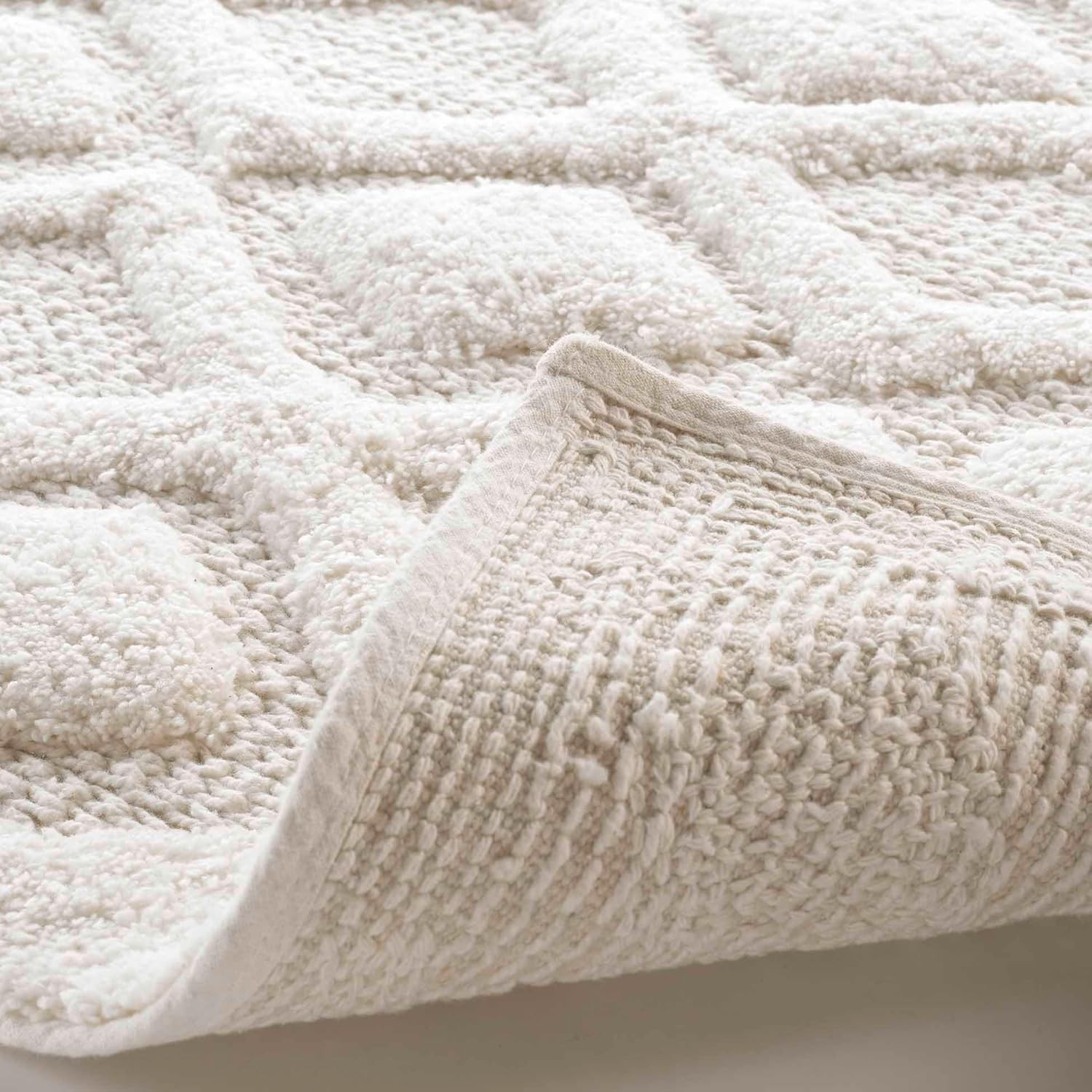 Ajoutez une touche d’élégance et de confort à votre salle de bain avec ce tapis de bain en coton jacquard tufté. Conçu pour allier esthétisme et fonctionnalité, il offre une surface douce et agréable sous les pieds, idéale pour sortir de la douche ou du bain. Le tissage jacquard apporte une texture raffinée et un style unique, tandis que le tuftage améliore l’épaisseur et la capacité d’absorption du tapis. Grâce à sa fabrication 100 % coton, il absorbe rapidement l’humidité tout en restant doux et agréable au contact. Ce tapis certifié Oeko-TEX respecte des normes strictes, sans substances nocives. Lavable en machine à 40 °C et compatible avec un séchage modéré, il est facile à entretenir au quotidien. Offrez-vous une sensation de spa à la maison, avec un tapis à la fois esthétique, doux et pratique.