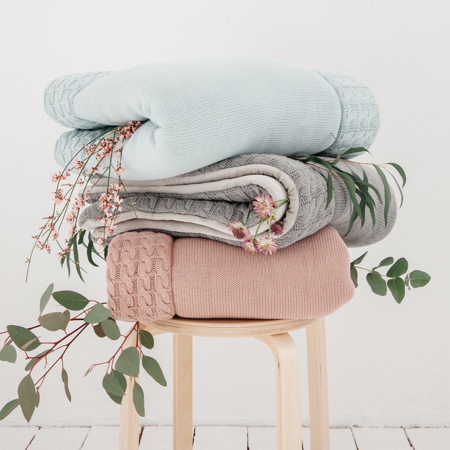 Les couleurs discrètes et le bord en tricot douillet font de la couverture pour bébé un accroche-regard impressionnant !