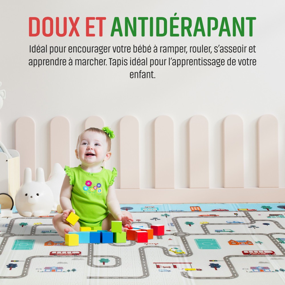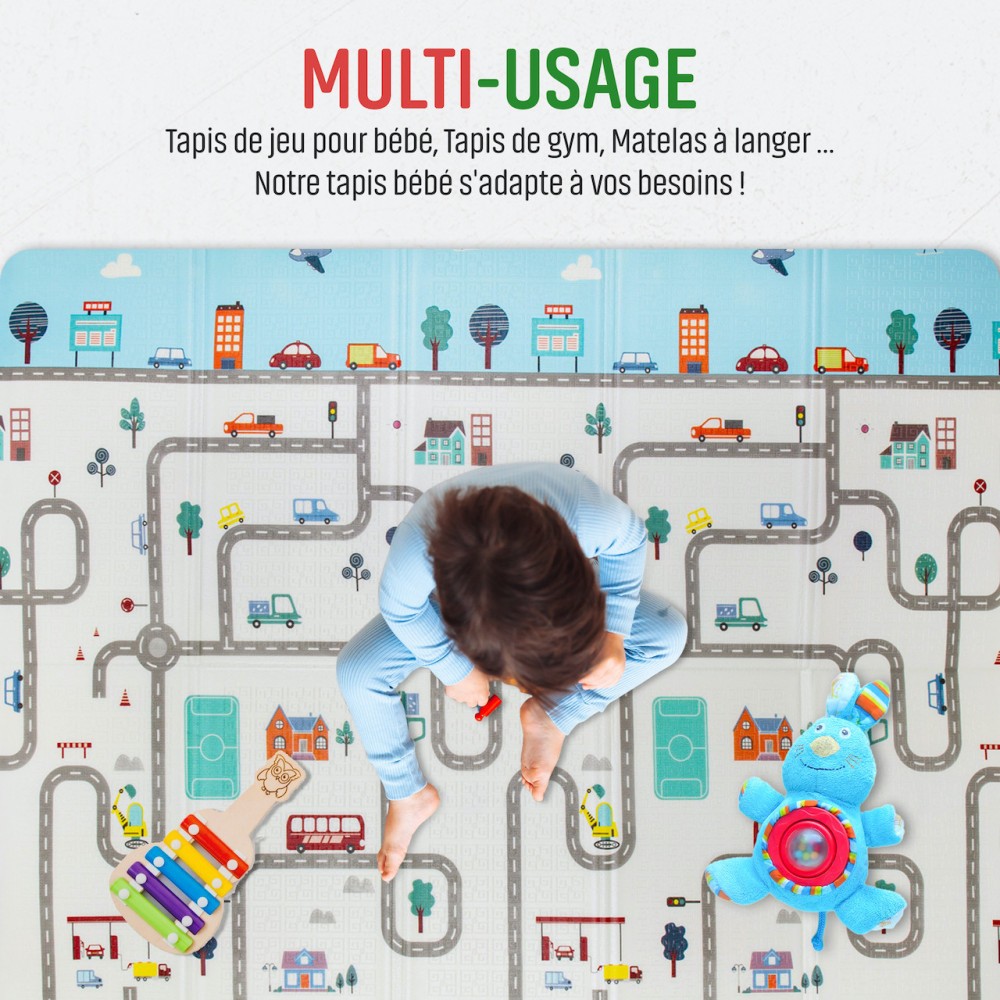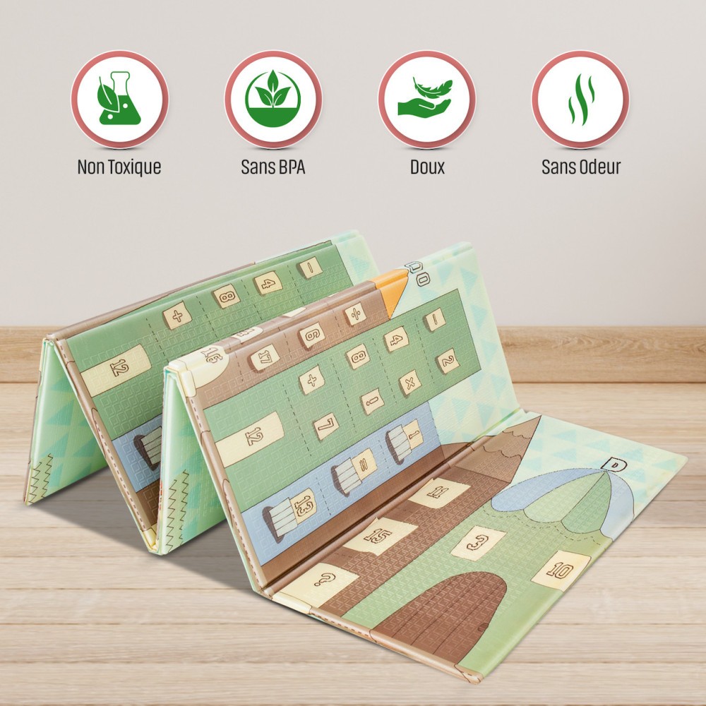 Pliable et transportable: Ce tapis se plie facilement, ce qui le rend parfait pour un rangement facilité et les voyages. Votre enfant peut profiter de son espace de jeu préféré où que vous soyez.