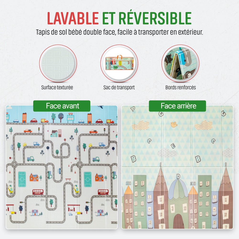 Libellé Tapis d'Eveil pliable Réversible Bébé Circuit & Ville par Kidolo