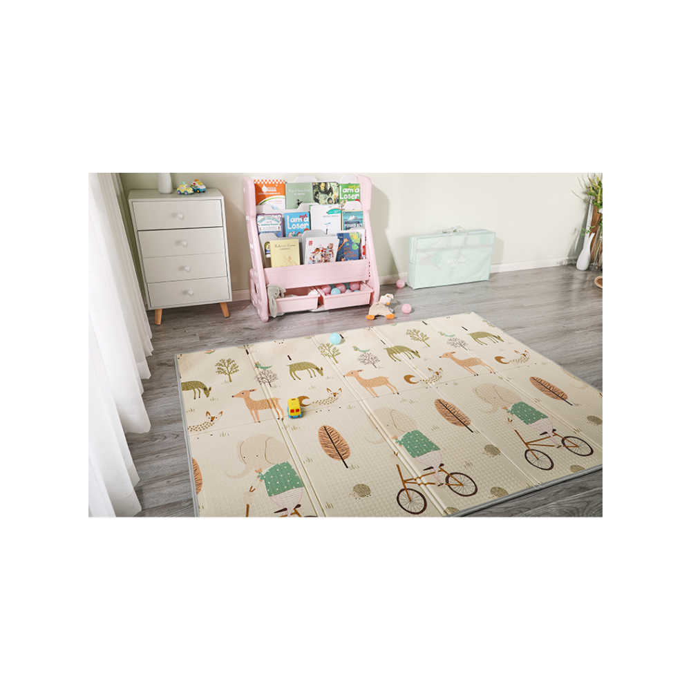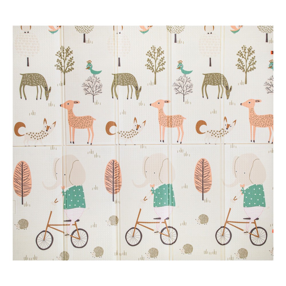 Tapis d'Eveil Pliable Réversible Bébé PREMIUM Elephant & Oiseaux par Kidolo