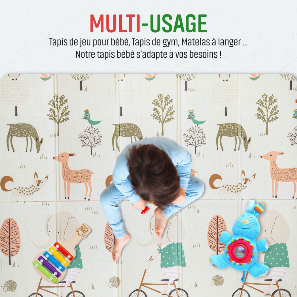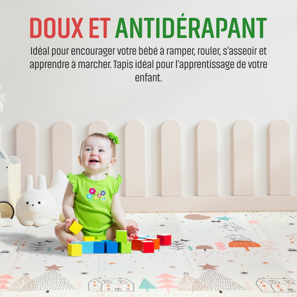 Sécurité et qualité : Ce tapis est fabriqué conformément aux normes de sécurité et est non toxique pour votre bébé. Le matériau est doux, résistant et se nettoie facilement.