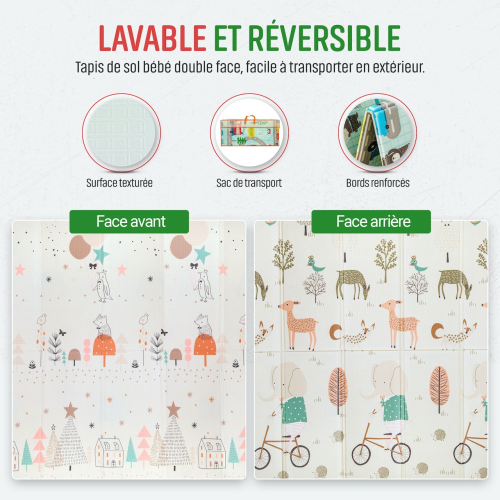 Pliable et transportable: Ce tapis se plie facilement, ce qui le rend parfait pour un rangement facilité et les voyages. Votre enfant peut profiter de son espace de jeu préféré où que vous soyez.
