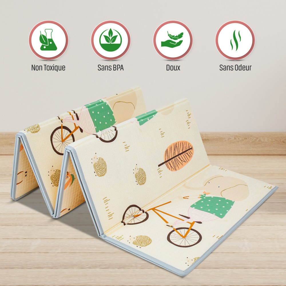 | Libellé | Tapis d'Eveil Pliable Réversible Bébé PREMIUM Elephant & Oiseaux par Kidolo |