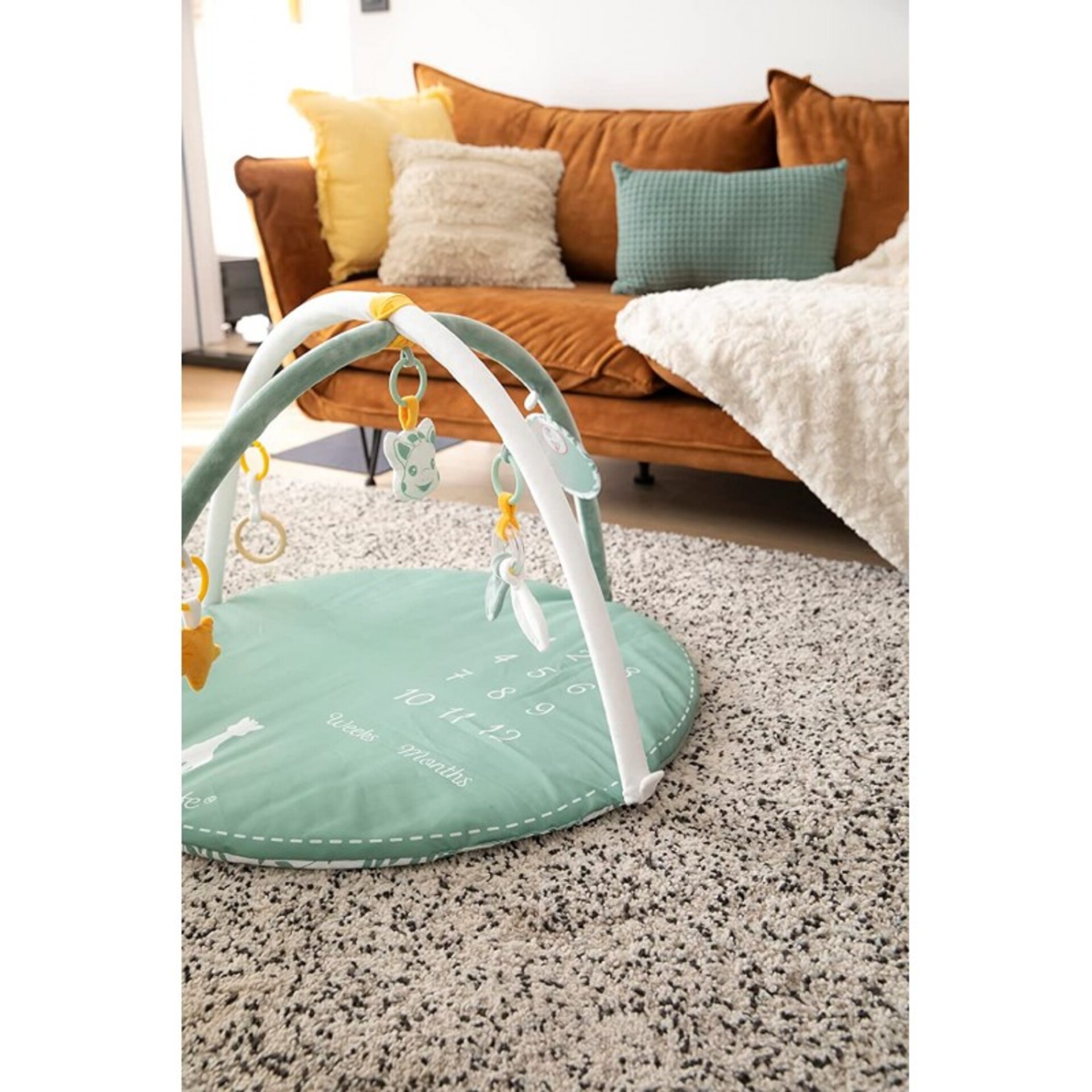 Un tapis d'éveil multi-fonctions au design élégant et aux couleurs sobres.
