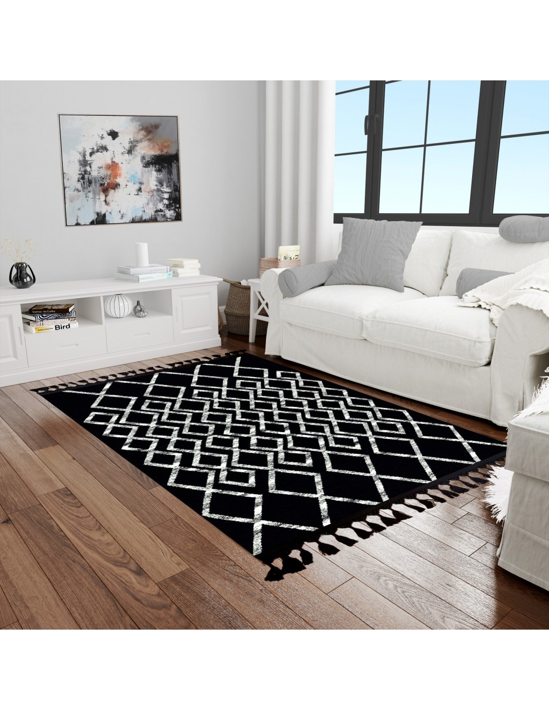 Ce tapis donnera une note chic et chaleureuse à votre intérieur. Tapis fabriqué à 50% en Polyester et 50% Coton, Disponible en différentes tailles, Nos tapis étant fabriqués à la machine, un écart de plus ou moins 3cm peut être constaté. Il ne s'agit pas d'un défaut de fabrication, ce que le client admet et reconnait.
