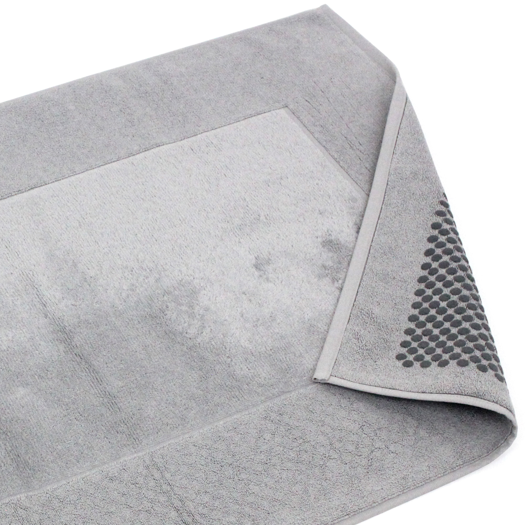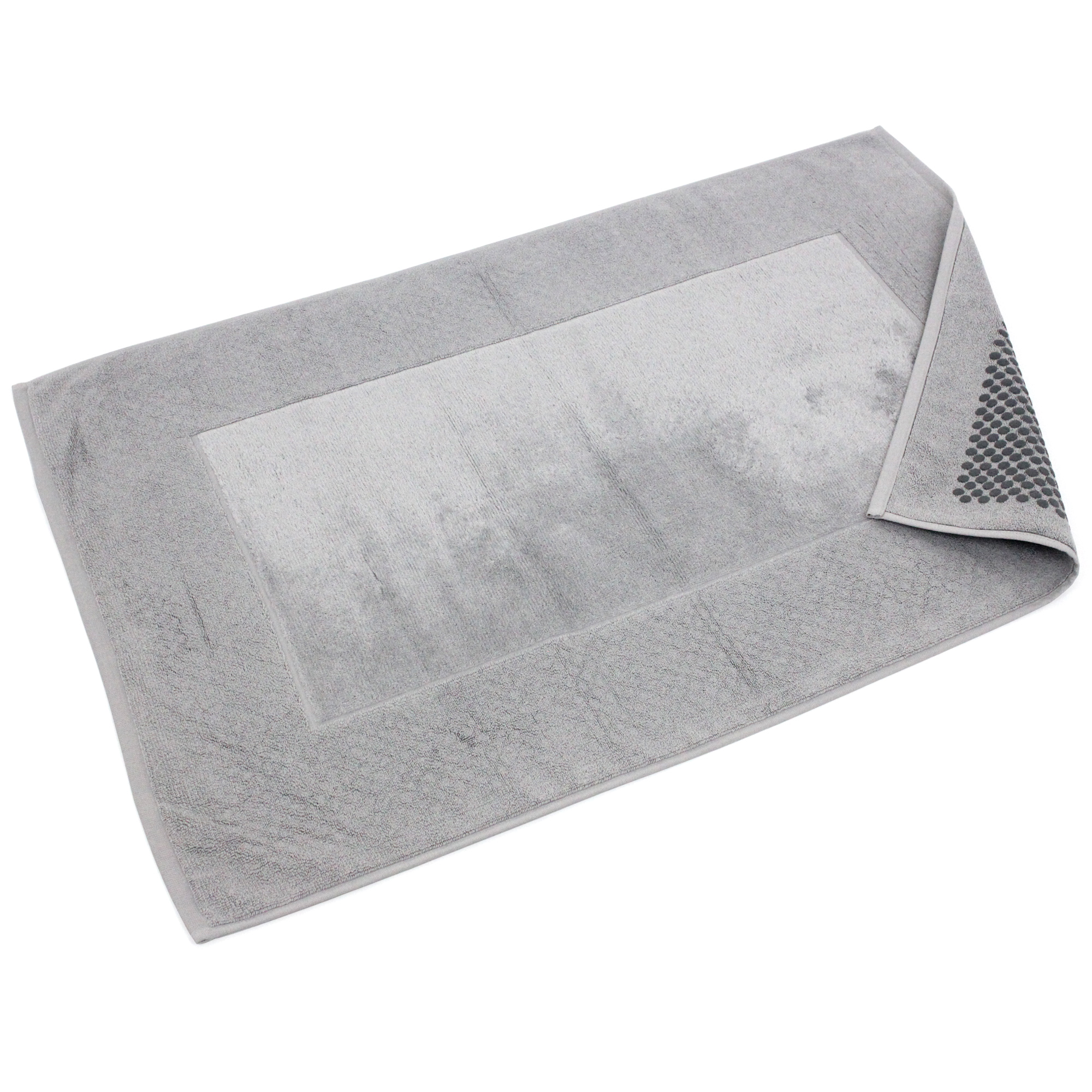 | Plus produit | Tapis de bain antidérapant velours et éponge bouclette 60x90 cm PRESTIGE gris Argent Linge de bain éponge 700 g/m2 en 100% coton coloris uni et finition centre velours. |
