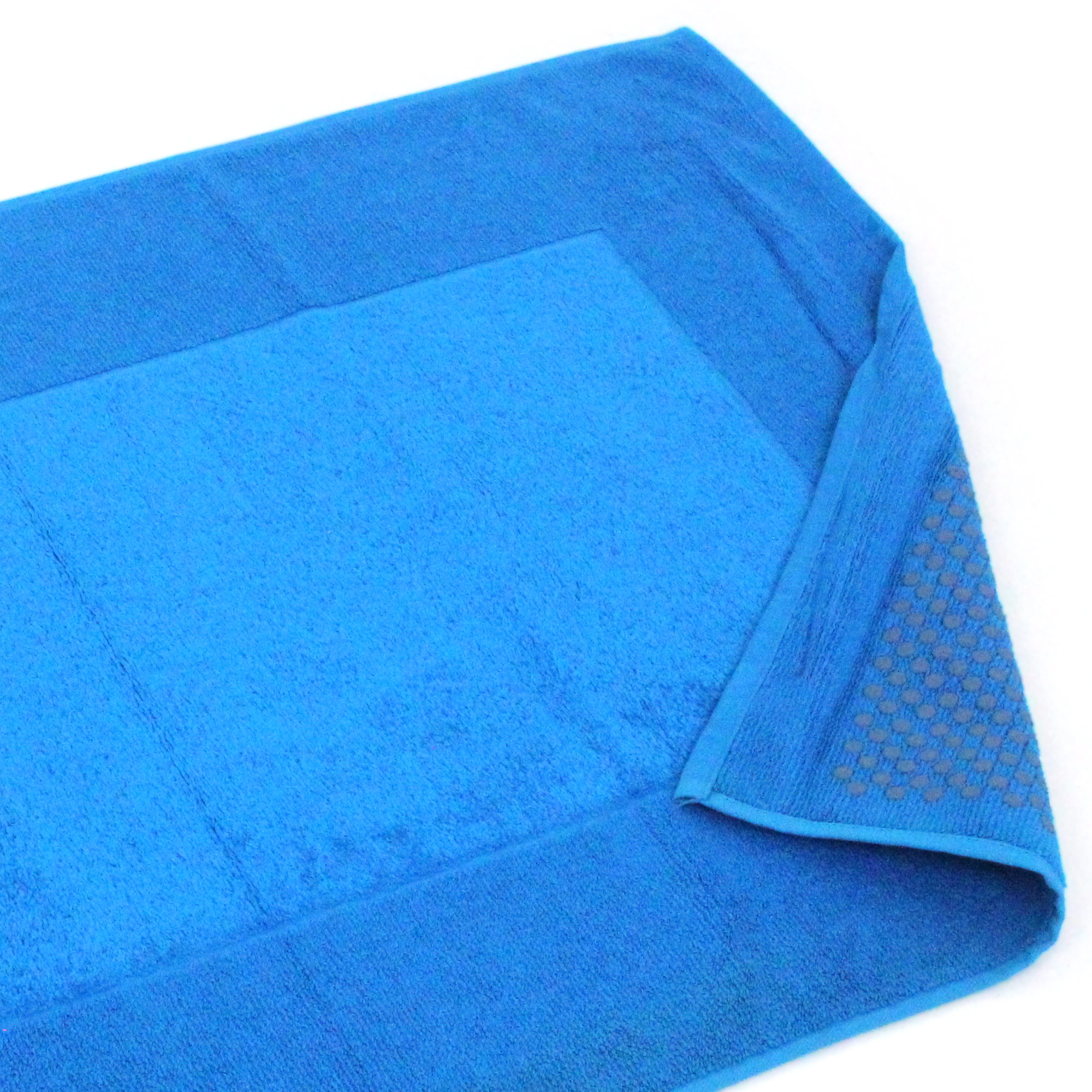 Linge de bain en 100 % coton qualité 700 g/m2 avec une face antidérapante et une face utilisable au quotidien avec une partie éponge velours pour un excellent confort.