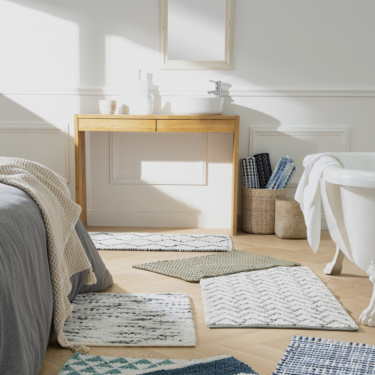 Conçu en polycoton, ce tapis de bain Chevron ultra doux et épais apportera une touche déco à votre salle de bain. Ce tapis antidérapant est lavable à 30°en machine. Ne pas le repasser ni de le sécher en machine.