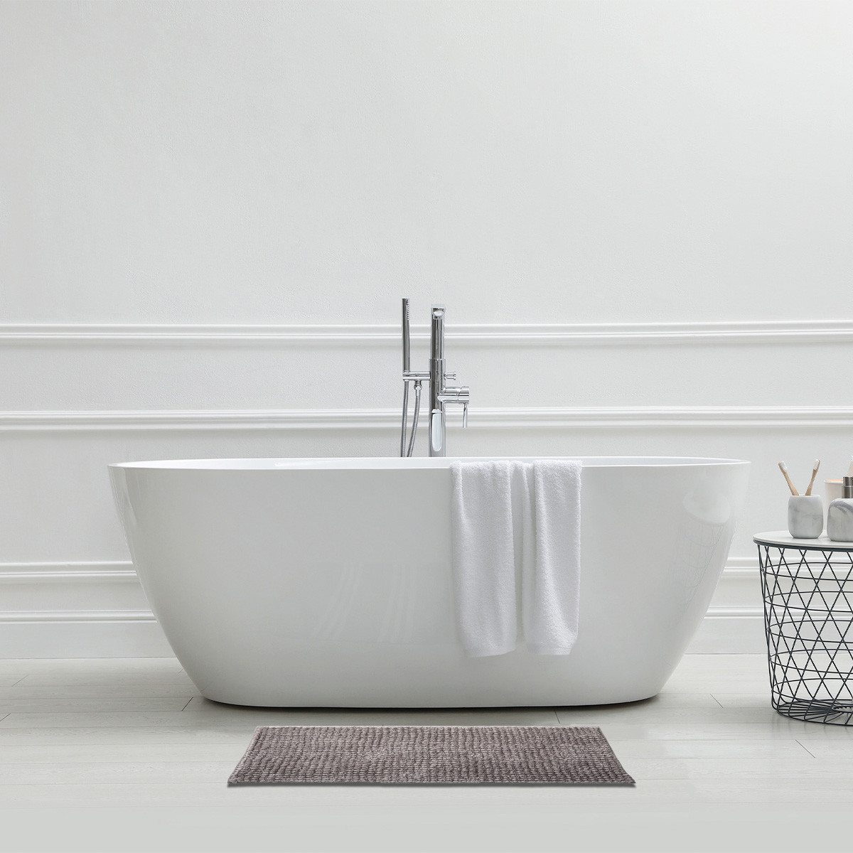 | Libellé | Tapis de bain en polyester uni gris lunaire |