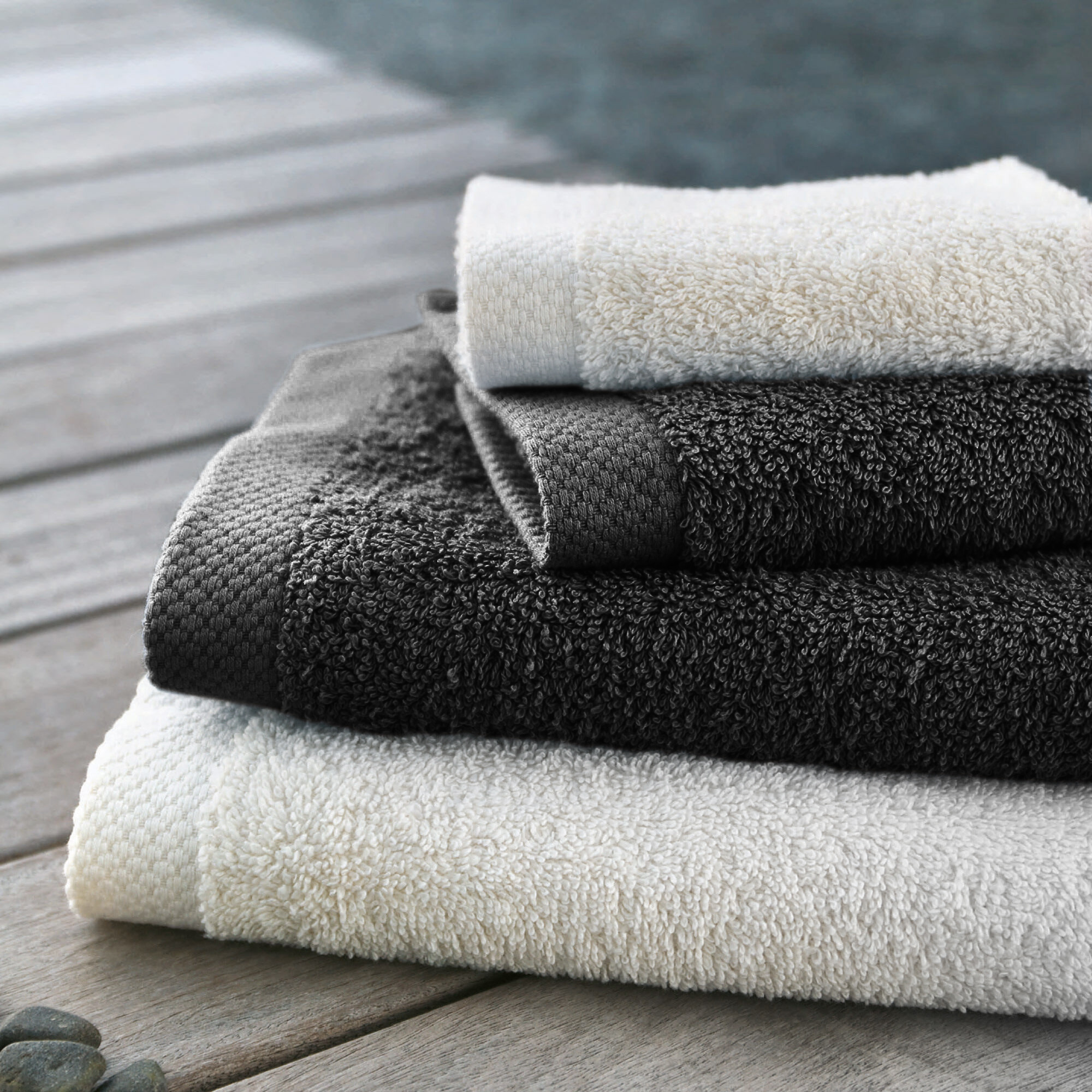- Collection Pure également déclinée en drap de bain 100x150 cm, drap de douche 70x180 cm et 70x140 cm, serviette de toilette 50x100 cm, serviette invité 33x50 cm et gant de toilette 16x21 cm, vendus séparément.