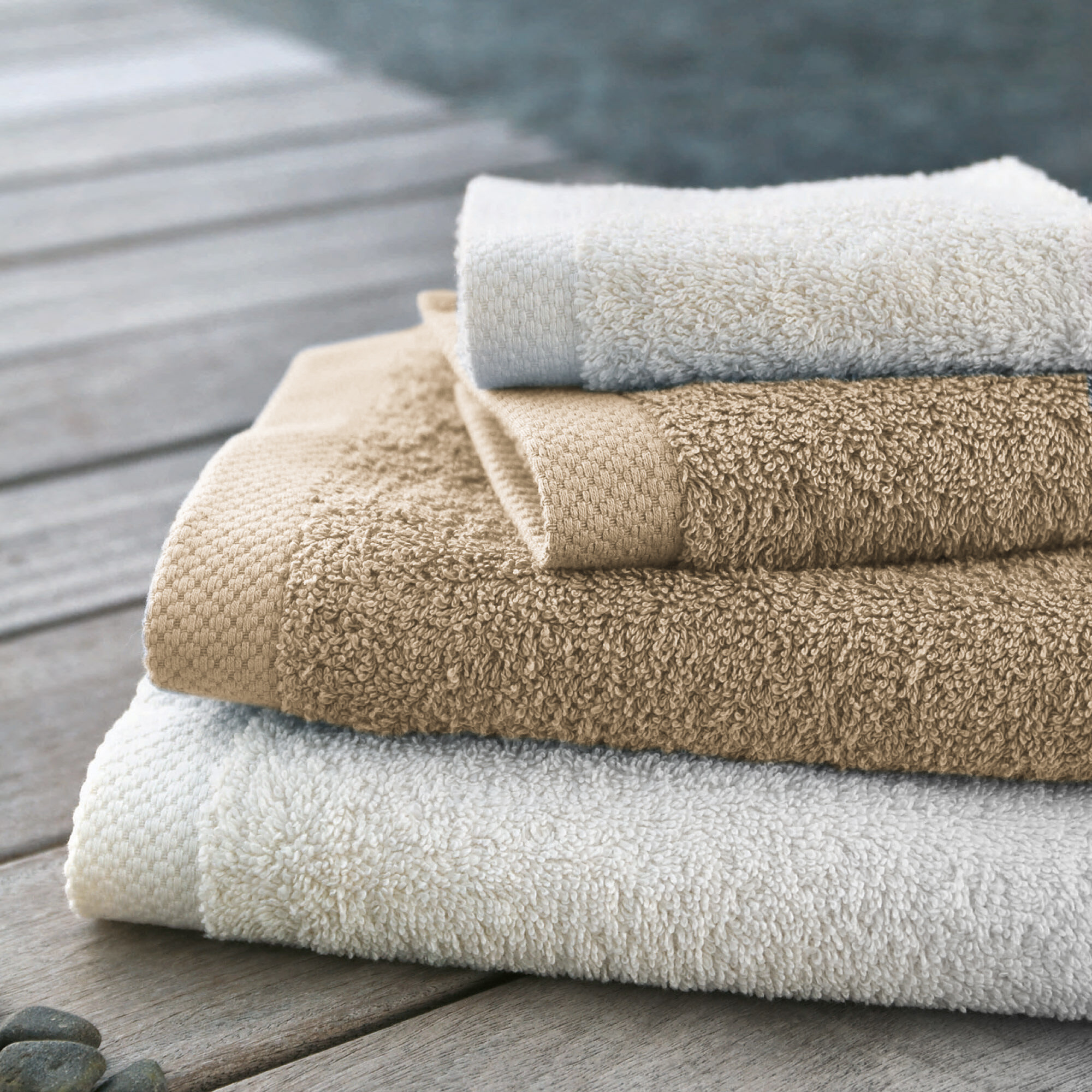 - Collection Pure également déclinée en drap de bain 100x150 cm, drap de douche 70x180 cm et 70x140 cm, serviette de toilette 50x100 cm, serviette invité 33x50 cm et gant de toilette 16x21 cm, vendus séparément.