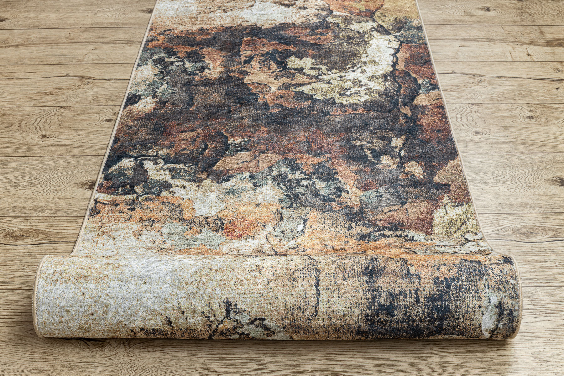 TAPIS DE COULOIR antidérapant LOTUS ABSTRACT 52910 beige lavable 120cm 120x970 cm