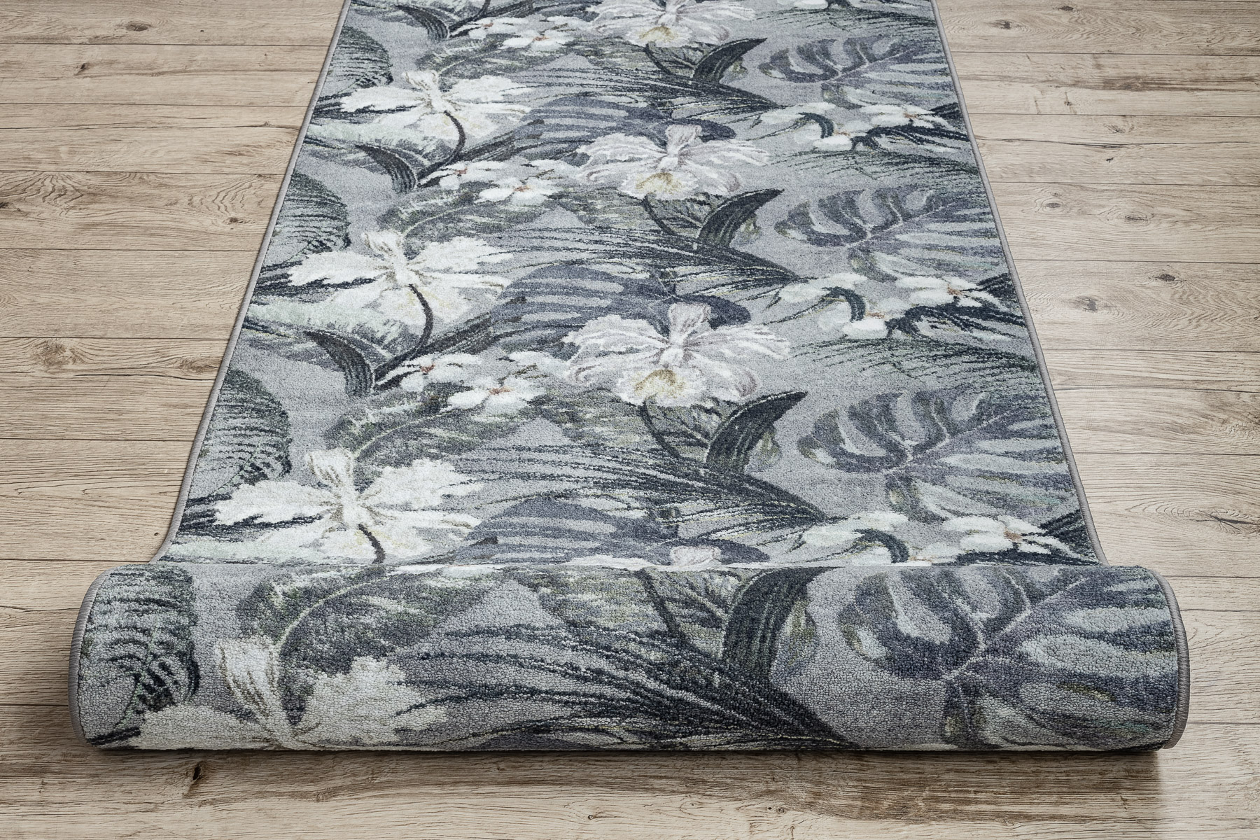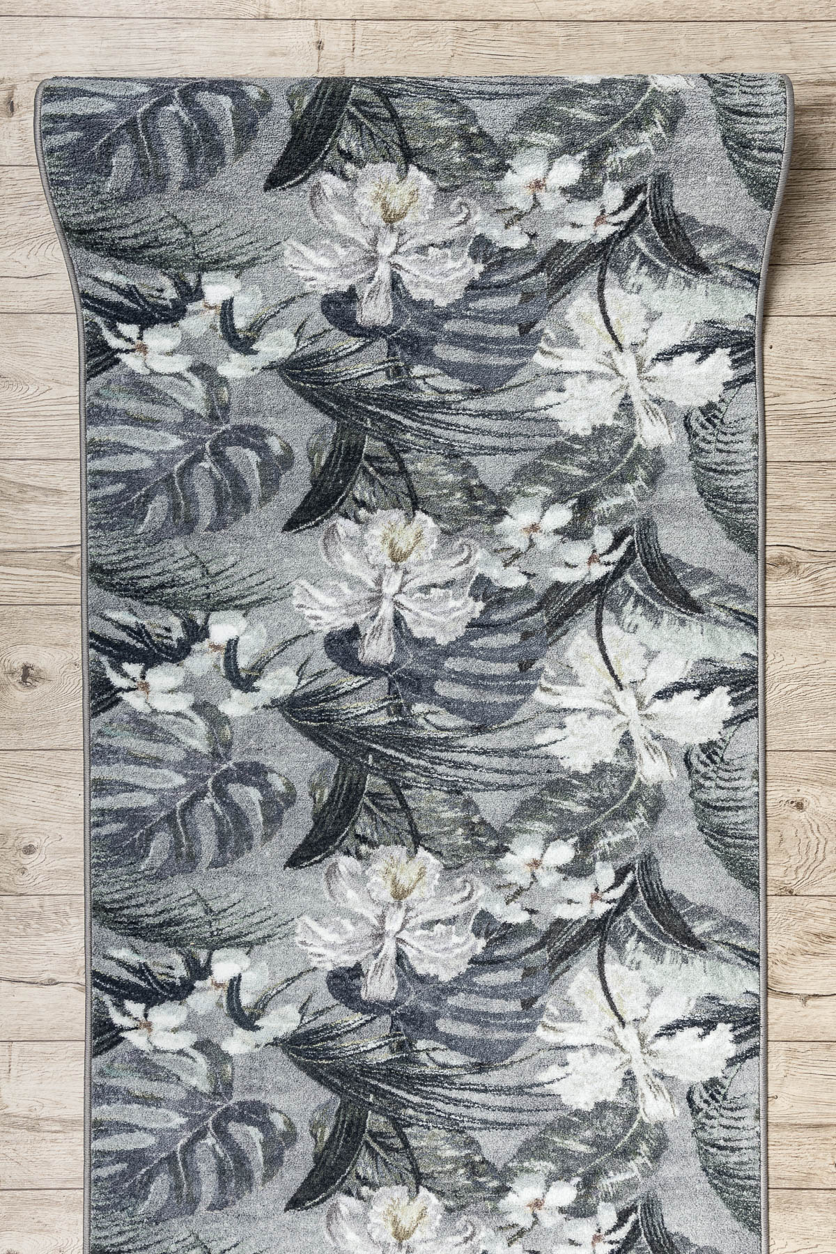TAPIS DE COULOIR antidérapant MONSTERA Feuilles la gomme gris 80 cm 80x300 cm