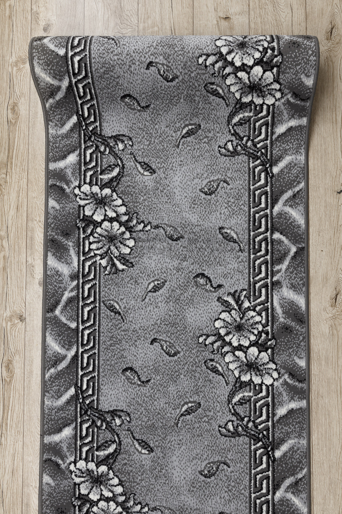 TAPIS DE COULOIR BCF MORAD Trio fleurs, feuilles gris 100 cm 100x850 cm
