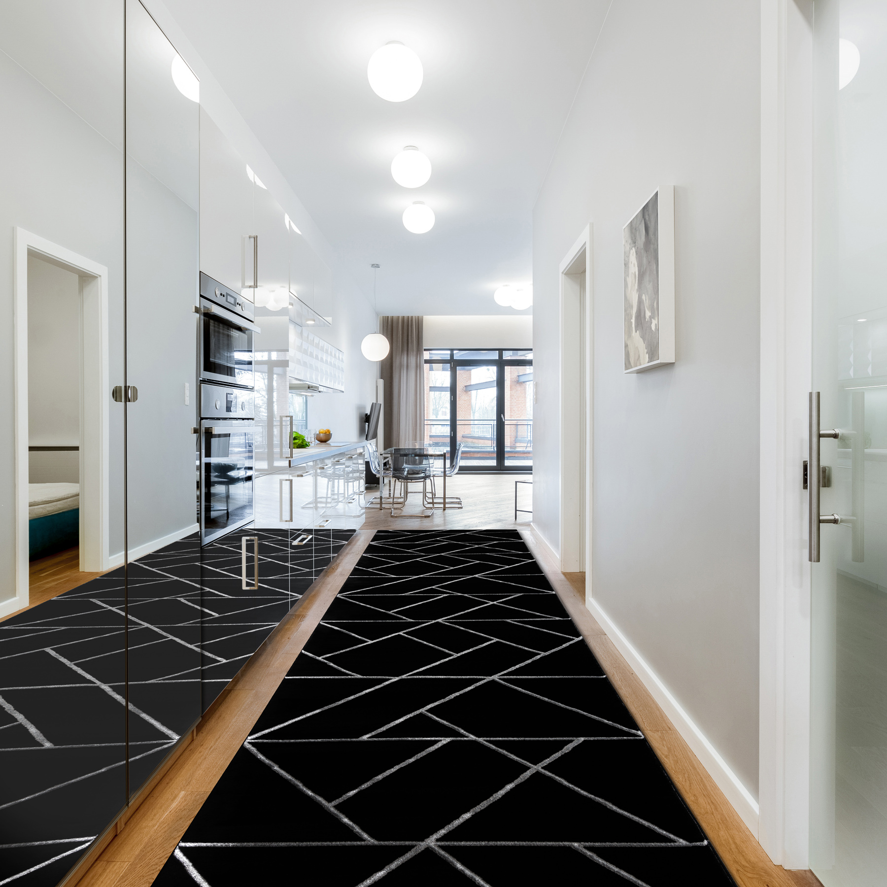 | Libellé | Tapis de couloir EMERALD exclusif 7543 glamour, élégant géométrique noir / argent 80 cm 80x810 cm |