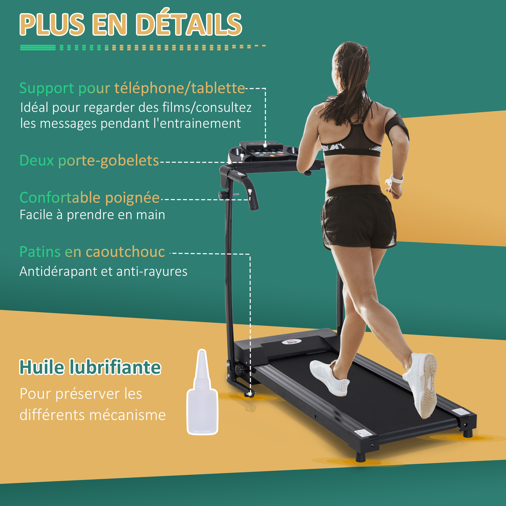 | Libellé | Tapis de course électrique pliable 440 W tapis roulant motorisé vitesse réglable 1-10 Km/h écran LCD multifonction 12 programmes prédéfinis support i |