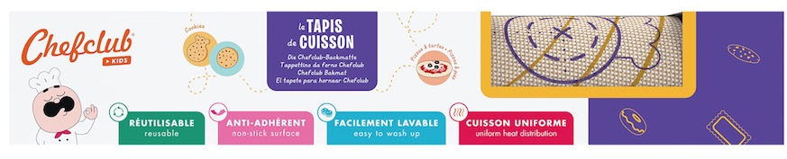 Le tapis de cuisson Chefclub n'est pas un simple tapis de cuisson car il possède un système de graphisme intégré permettant de créer de nombreuses formes pour des recettes sucrées et salées variées !