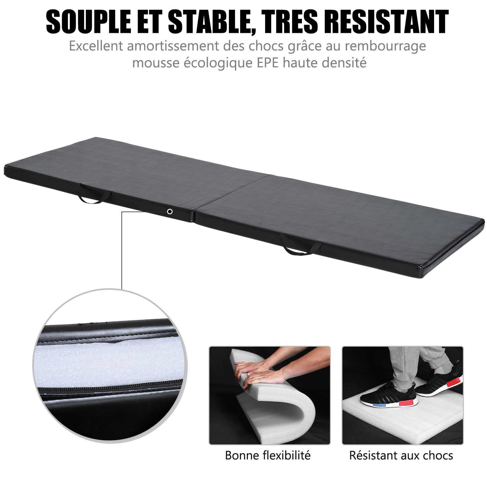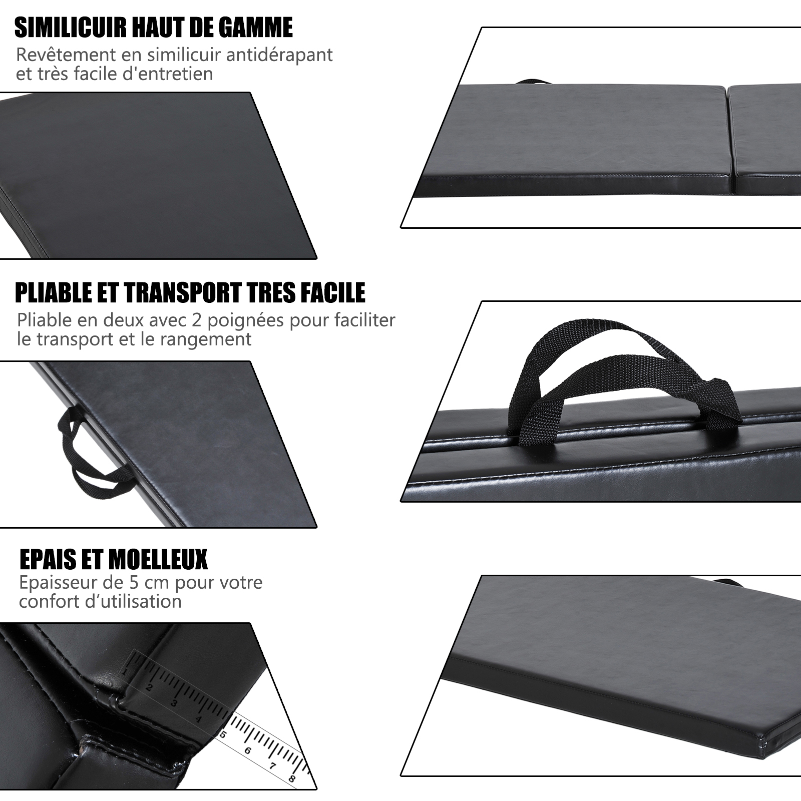 Libellé Tapis de gymnastique yoga pilates fitness pliable portable grand confort 180L x 60l x 5H cm revêtement synthétique noir