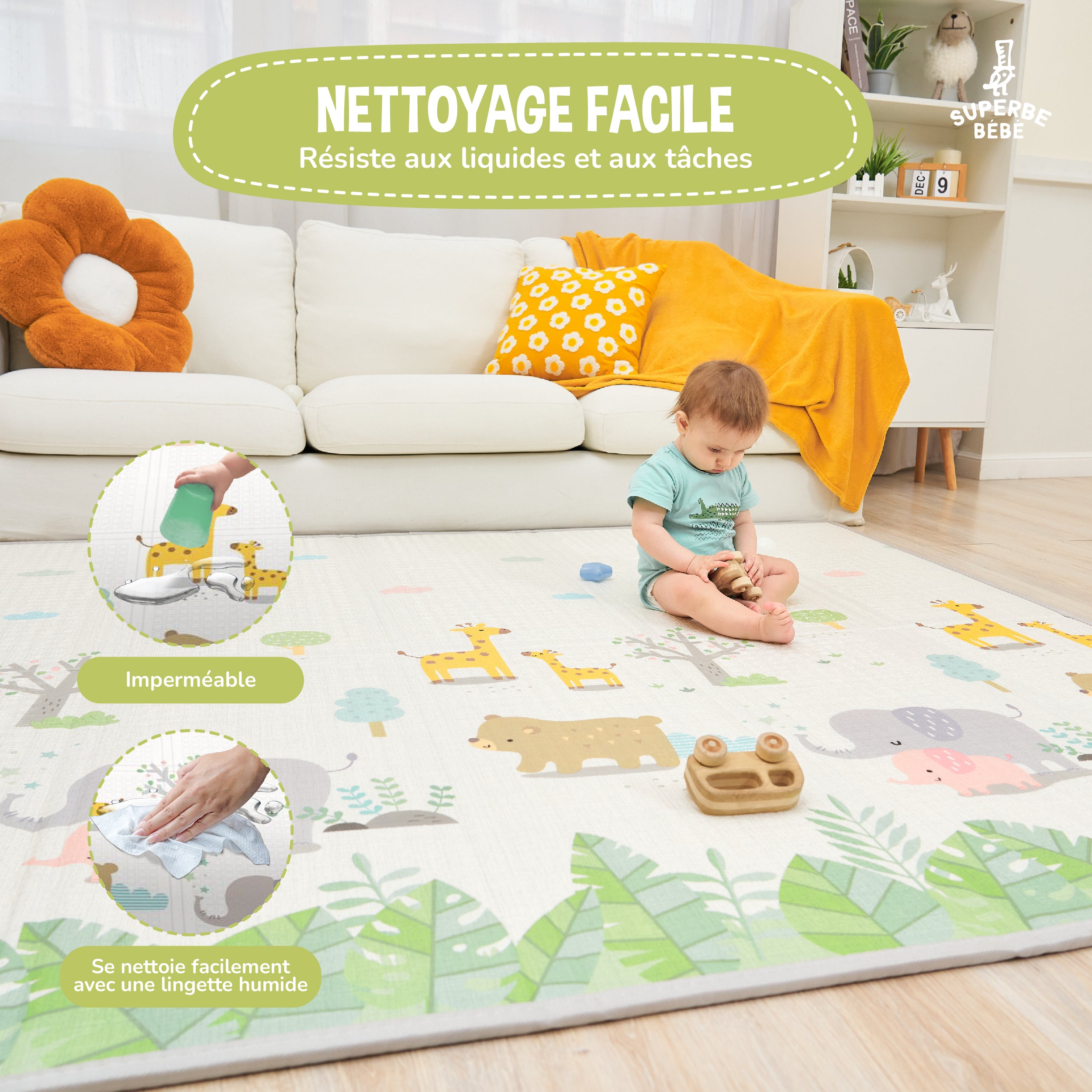 ⚒️ MULTI USAGES : Tapis de parc, tapis d'éveil, tapis de gym, tapis à langer, et même tapis de jeu et de yoga. Il s'adapte à tous les besoins des petits, des grands... et même des adultes !