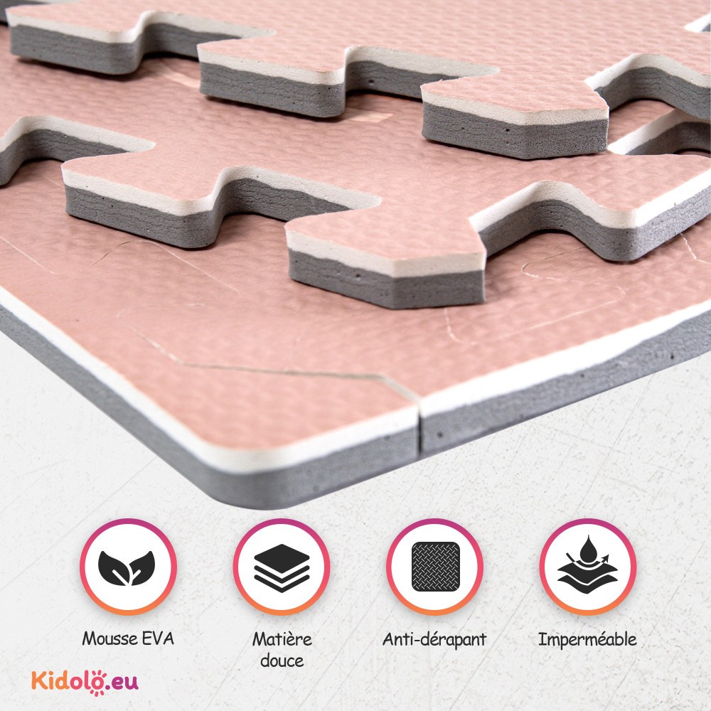 Notre tapis d'éveil en mousse EVA de qualité supérieure offre à votre enfant une surface de jeu sûre et douce. Respectant les normes de sécurité, il est non toxique et sans danger pour votre bébé.