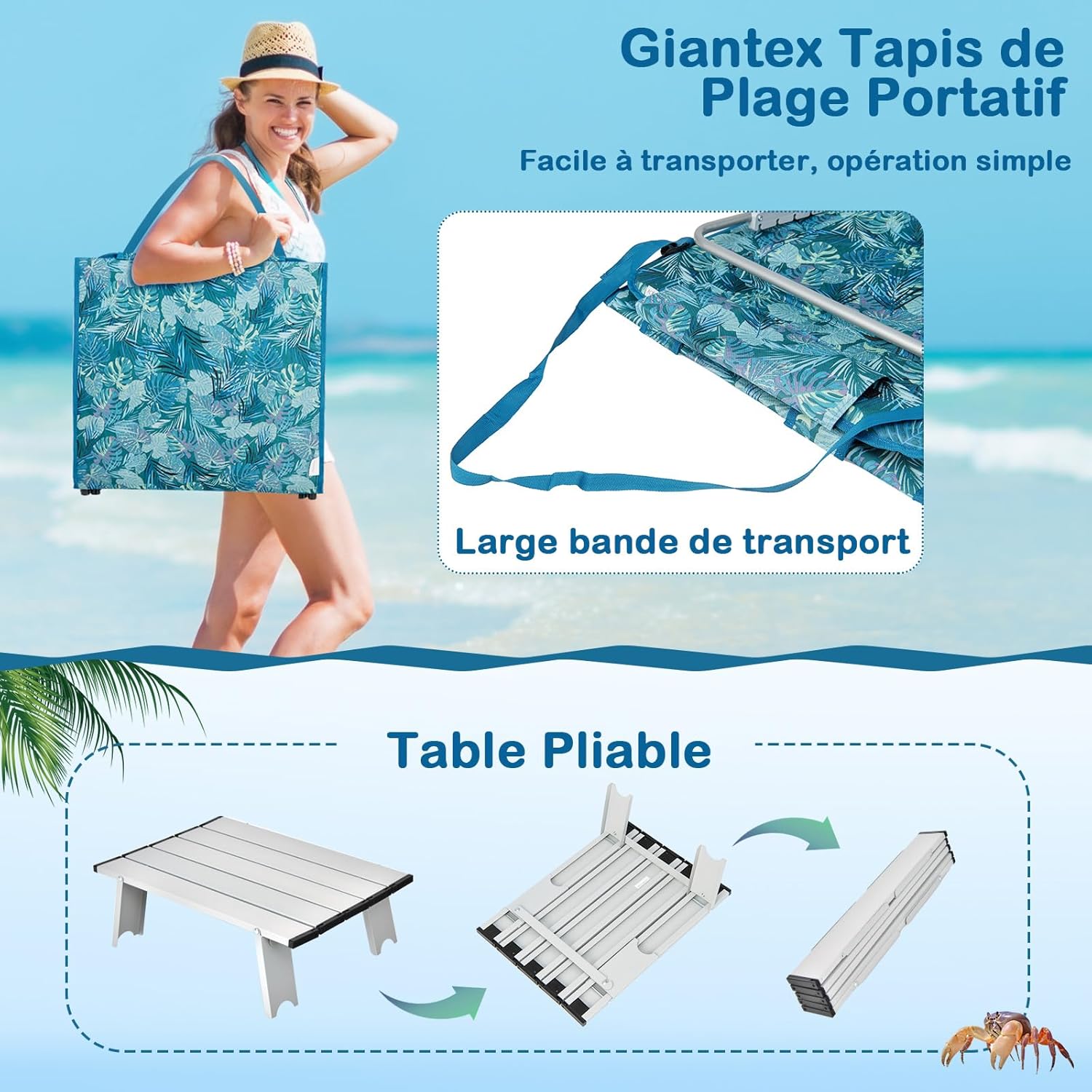 - Conception pliable et portable - La petite table et la natte de plage peuvent toutes deux être pliées rapidement pour gagner de la place, de sorte que vous pouvez les emmener en voyage sans problème. La table est livrée avec un sac de transport assorti pour faciliter son transport.