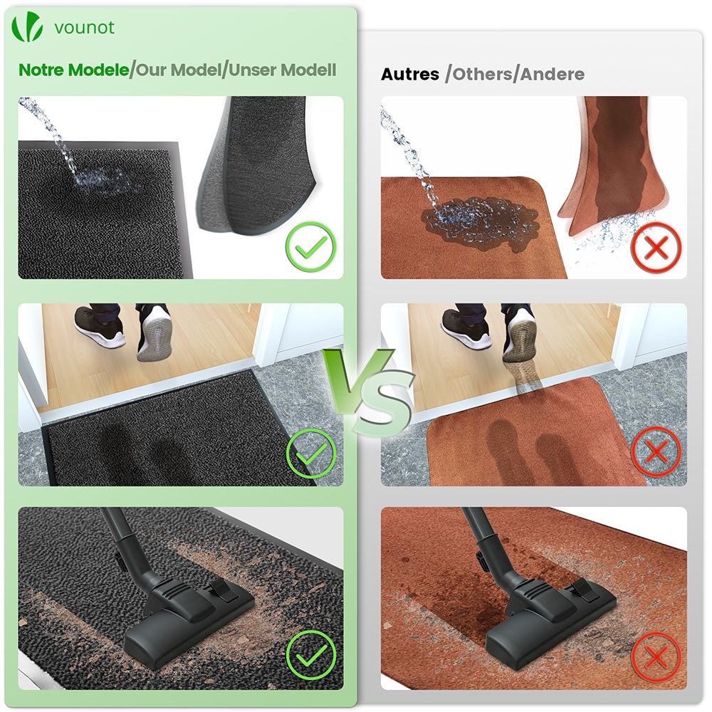 ULTRA RÉSISTANT : Notre tapis de porte en 100% polypropylène est plus dense et épais. Il peut être frotté vigoureusement sans déformation ni perte de poil.