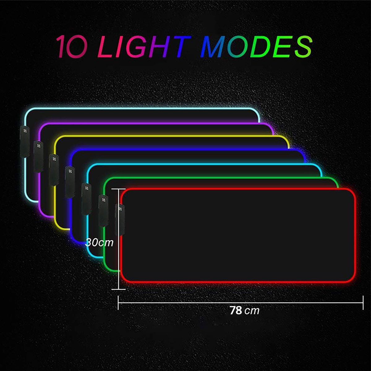 Tapis de Souris Gamer Lumineux LED 780mmx300mm, Rétro-Eclairage RVB 10 modes LED avec câble USB - Visiodi
