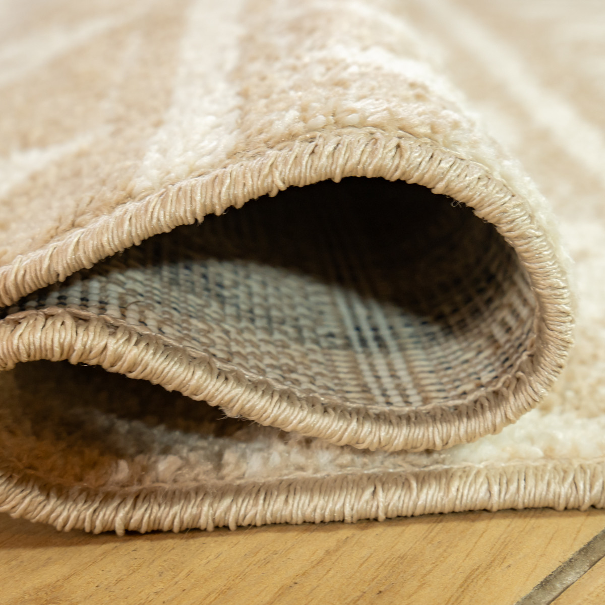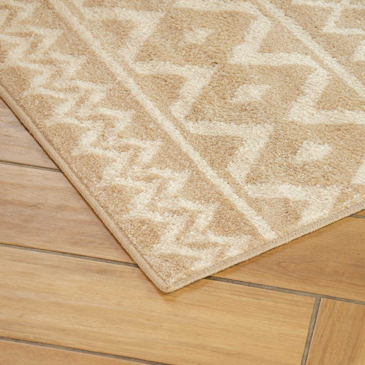Le tapis MUMBAI en polypropylène est l'accessoire idéal pour ajouter une touche ethnique et chaleureuse à vos espaces intérieurs. Son toucher doux et son fond beige subtilement agrémenté de motifs géométriques tels que des losanges et des lignes apporte une allure authentique et originale, parfaite pour rehausser tout type de décoration.