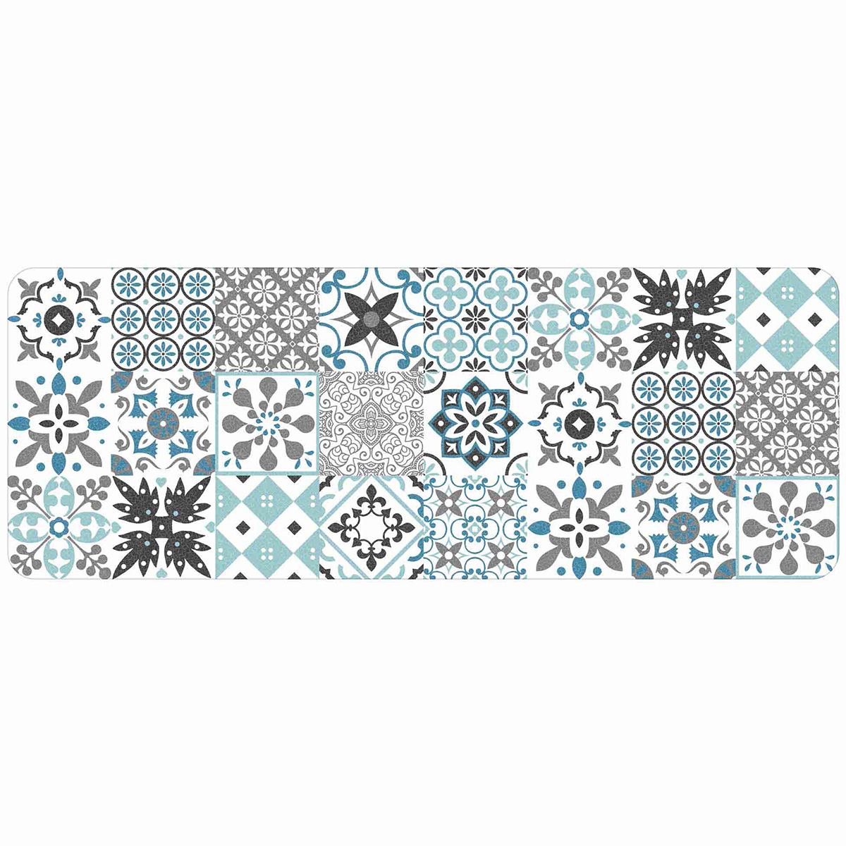 Très joli tapis en mousse imprimé Salou bleu rectangulaire de dimensions 45 x 120 cm fabrication 100% PVC. Très facile d'entretien, ce tapis en mousse PVC est également indéformable.