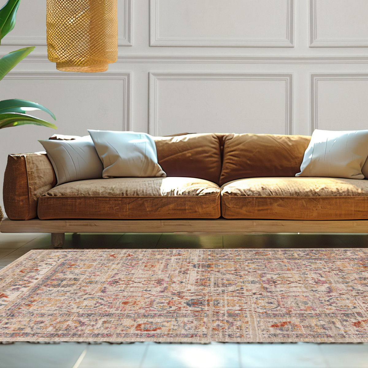 Son design vintage un peu usé et ses touches de couleurs douces apportent une touche d'authenticité qui se marie aussi bien avec des ambiances bohèmes, modernes ou éclectiques. Offrant une texture douce et agréable sous les pieds, il est facile à entretenir et conçu pour résister à l'épreuve du temps.