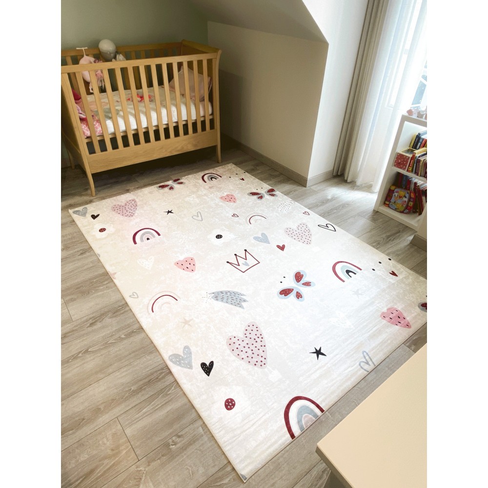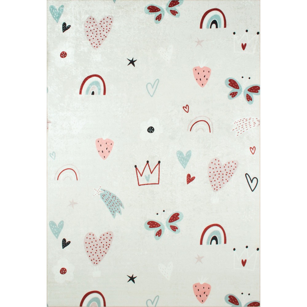Tapis Enfant Coeur et Arc En Ciel Rose par Nazar Rugs - 80 x 150 cm