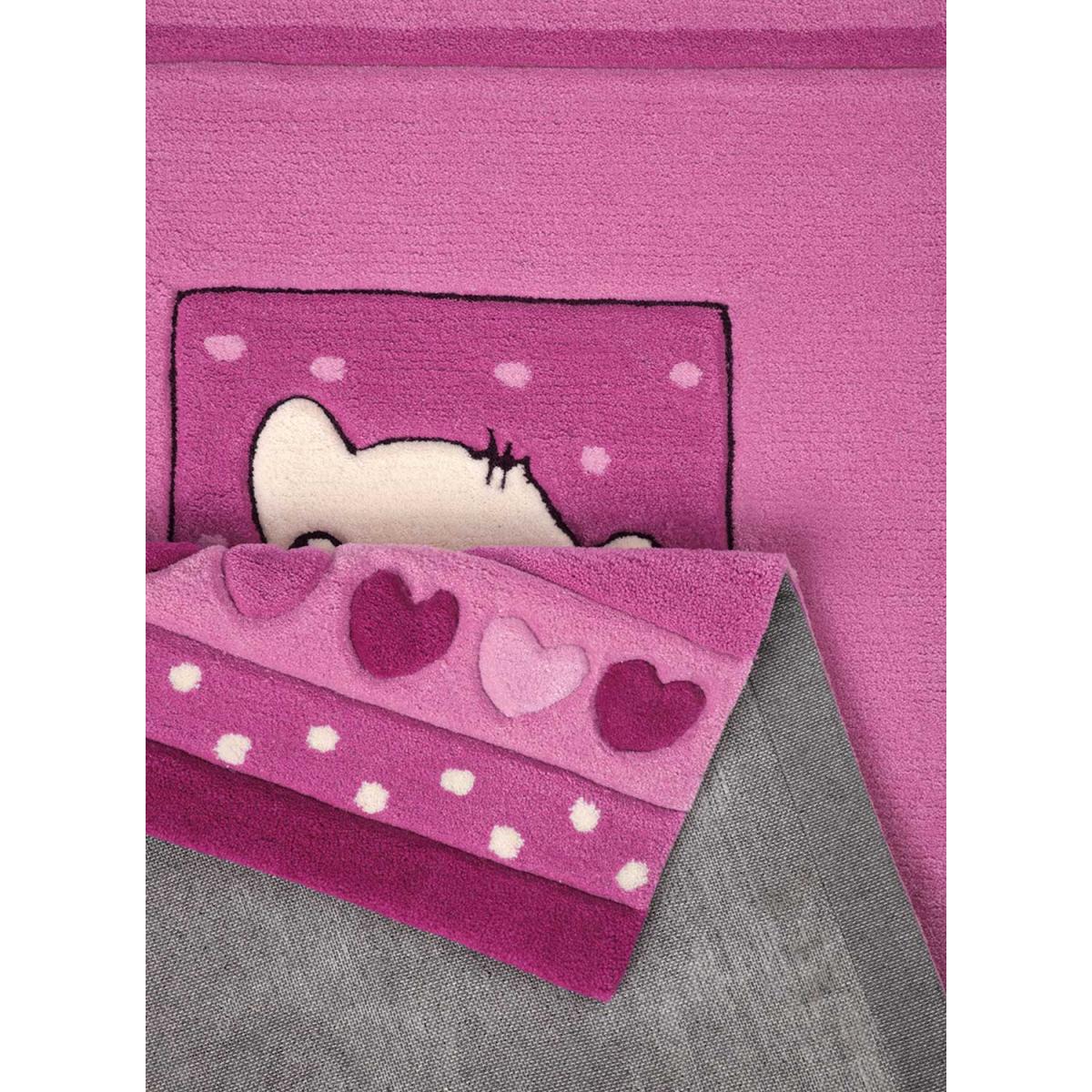Tapis enfant Rectangulaire KITTY KAT Rose Chambre Tufté adapté au chauffage par le sol