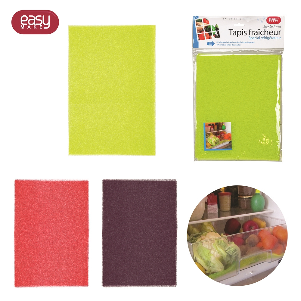 Ce tapis fraîcheur se place dans le bac à légumes de votre réfrigérateur. Il permet à l'air de circuler et prolonge la fraîcheur ainsi que la conservation de vos fruits et légumes. Dimensions 46.5x29.8 cm